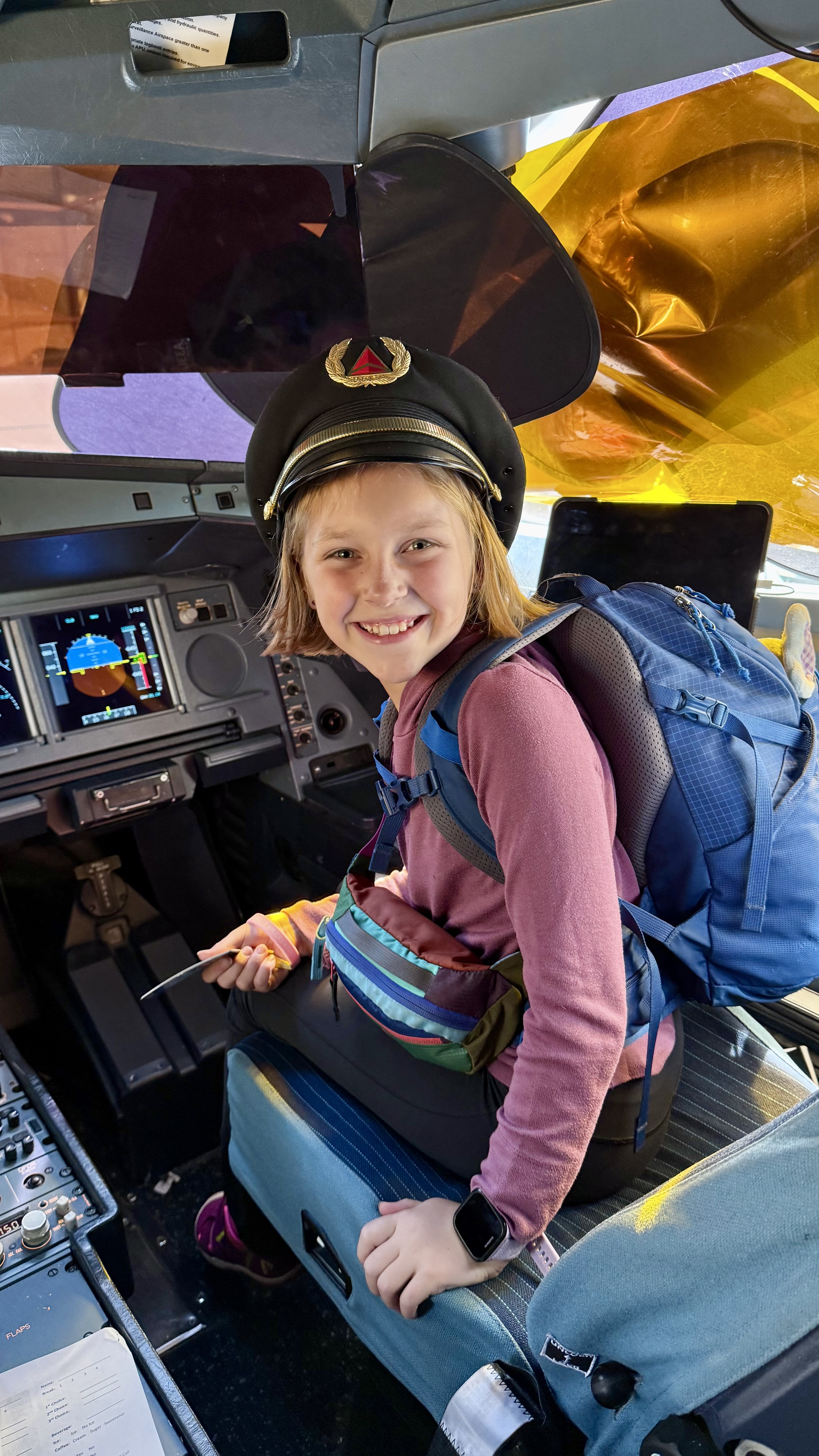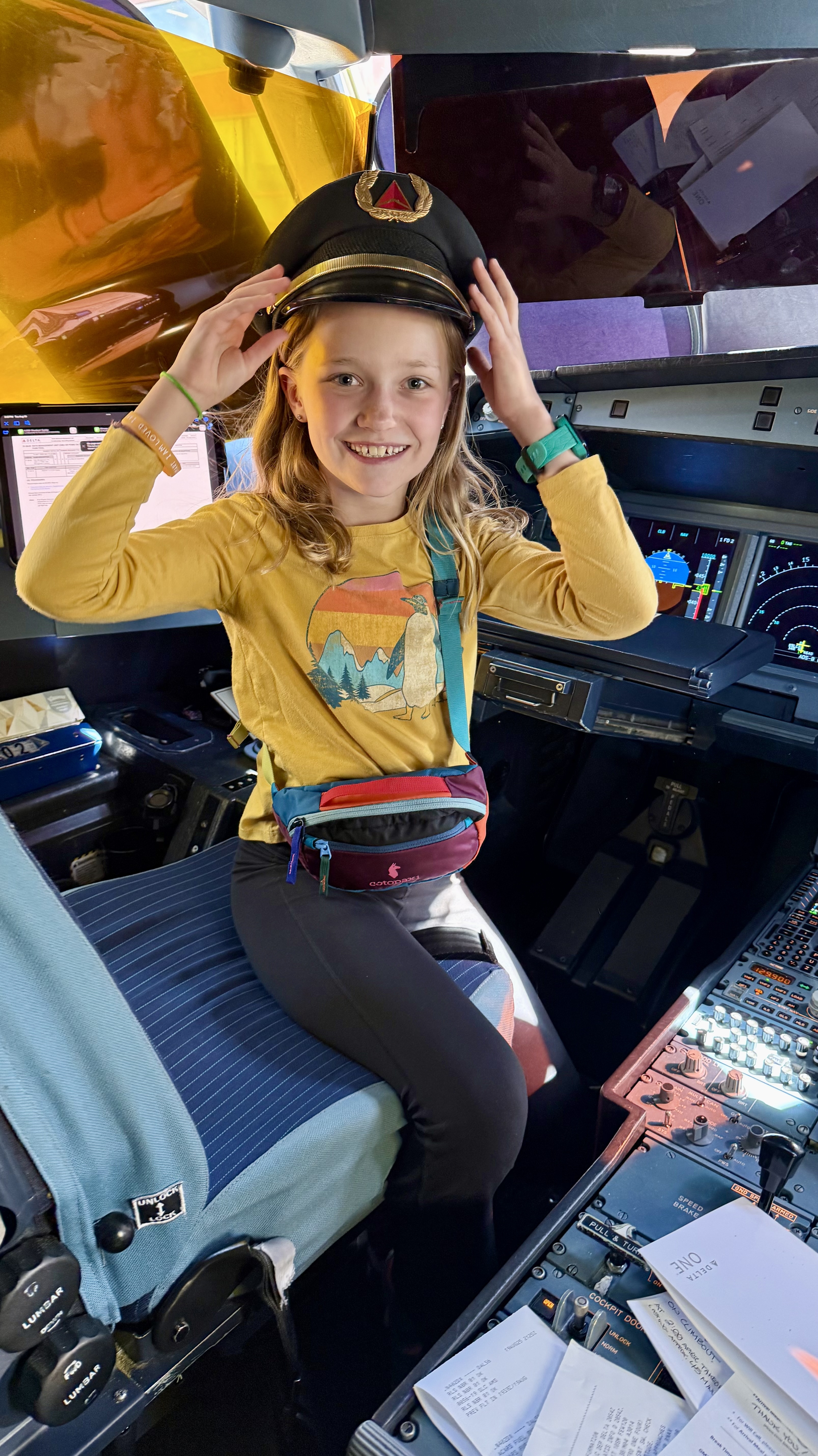 Travel came together smoothly. The girls visited the cockpit on two different planes, posed in the pilot seats, and collected Delta plane trading cards. Somewhere in there, our travelers turned happy after their emotional goodbyes to Gili and Atlas.