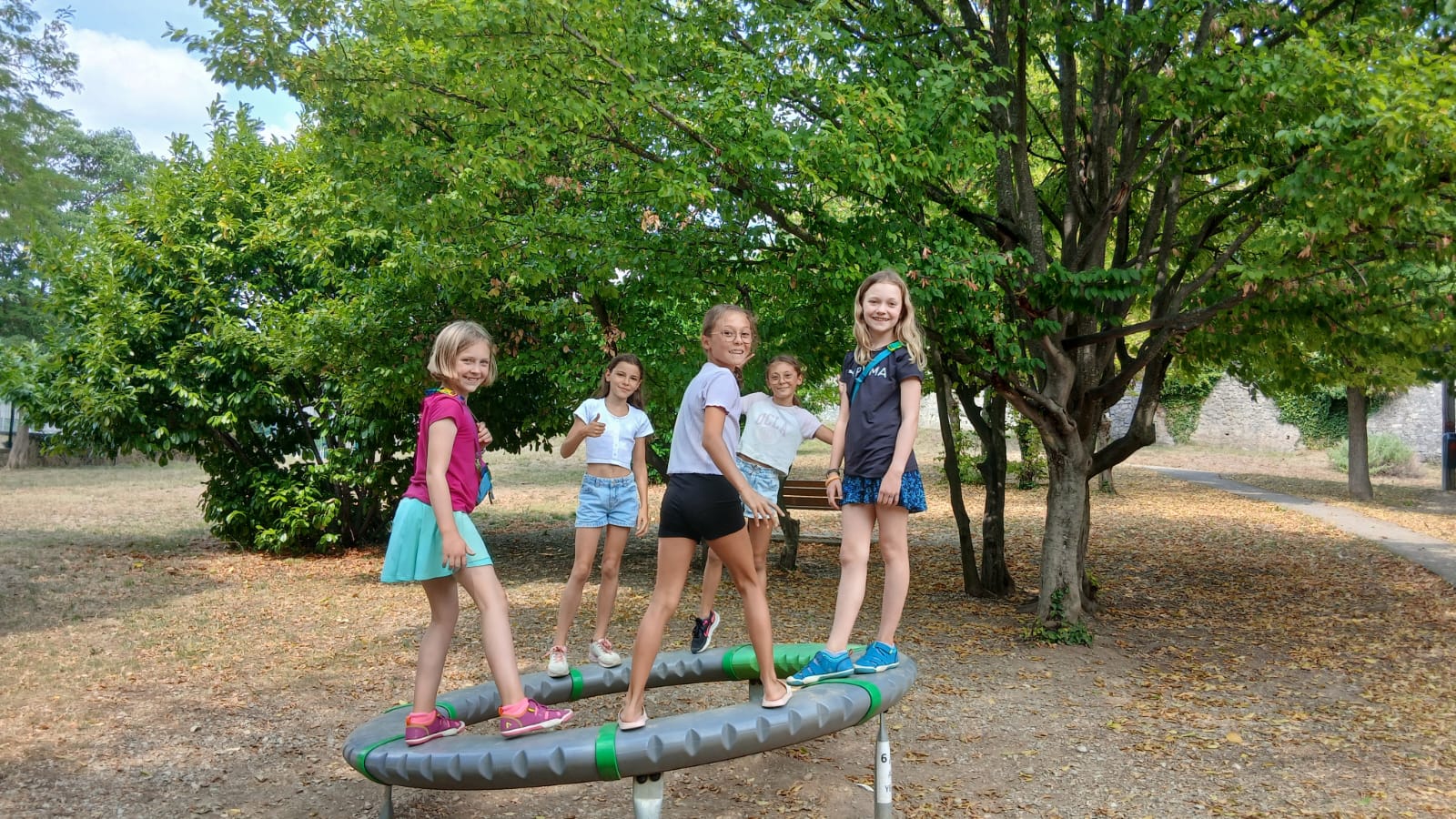 In Saillans, jet lag still had a grip, but Arya wanted nothing more than to see her friends. First we had a lovely welcome dinner with one of her friends from Scout Camp, Suzon, and her family. Then the next day they played at Elsa and Noemi’s house (These were Arya’s best friends while living in Saillans last year). Their mom, Celine, invited both girls to spend the day. The kids pinballed between the trampoline, playground sessions in the village, and indoor games. They also took Arya to an intimate artsy acrobatic show in a medieval tower in the next door town of Crest. We all reconnoitered for dinner, and after several animated games of Twister in the living room, we ate at about 22:45, and we walked home just after midnight. Oof! A fun night but much later than planned!
