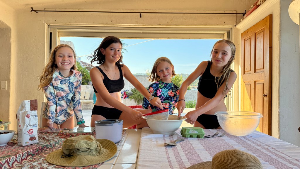 The rhythm there was simple and luxurious: swims in the calm sea, family style meals around a crowded table, runs along the Côte d’Azur, the occasional workout, and evenings with a book and a bottle of wine amongst friends. But the whole time here was certainly defined by the sea, where some of all of the kids were constantly swimming about or playing on the shore, where Arya and Finlee were ever present with their nets catching fish and crabs. Between the several families present, we had a lively little pack of 5-6 girls ranging in age from 9 to 14.