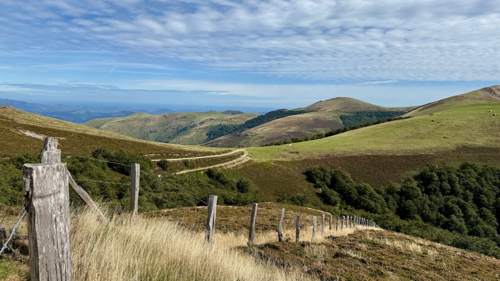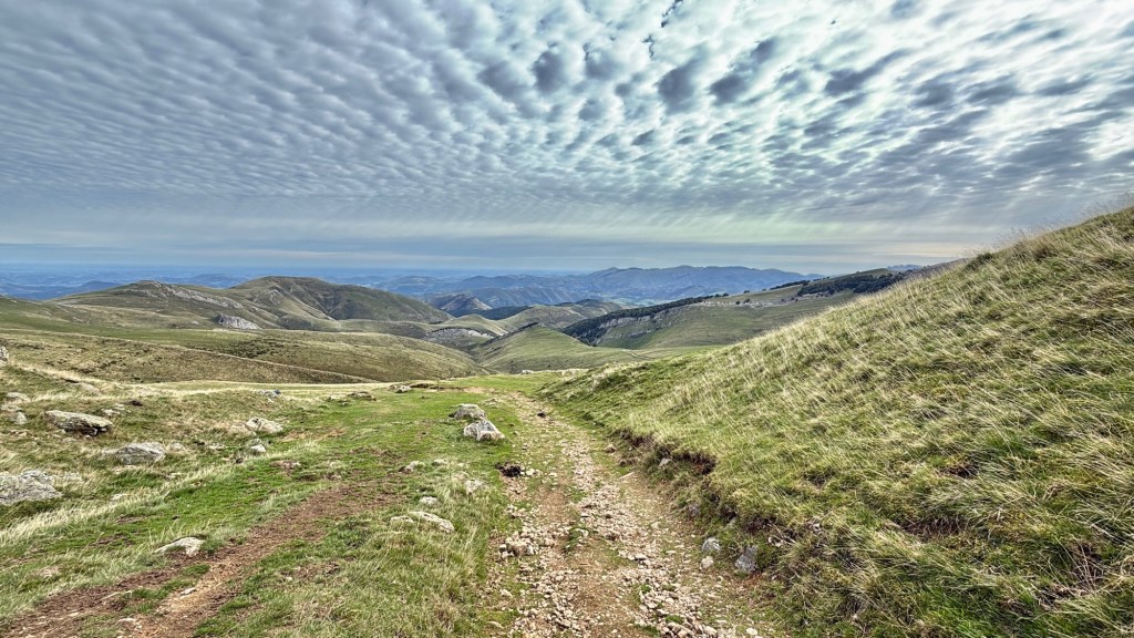 The trail then dropped into a hushed beechwood forest, where leaves whispered a welcome break from the storm. One final climb brought us to the high point of the day at 1,430 meters before we descended steeply into Roncesvalles. After 18 km and 925 meters of climbing, we were weary but triumphant.