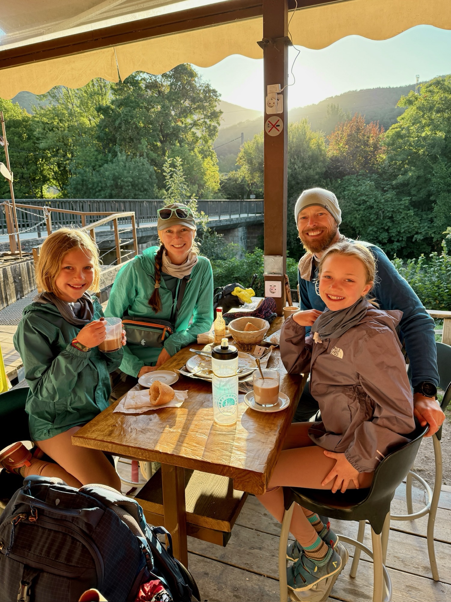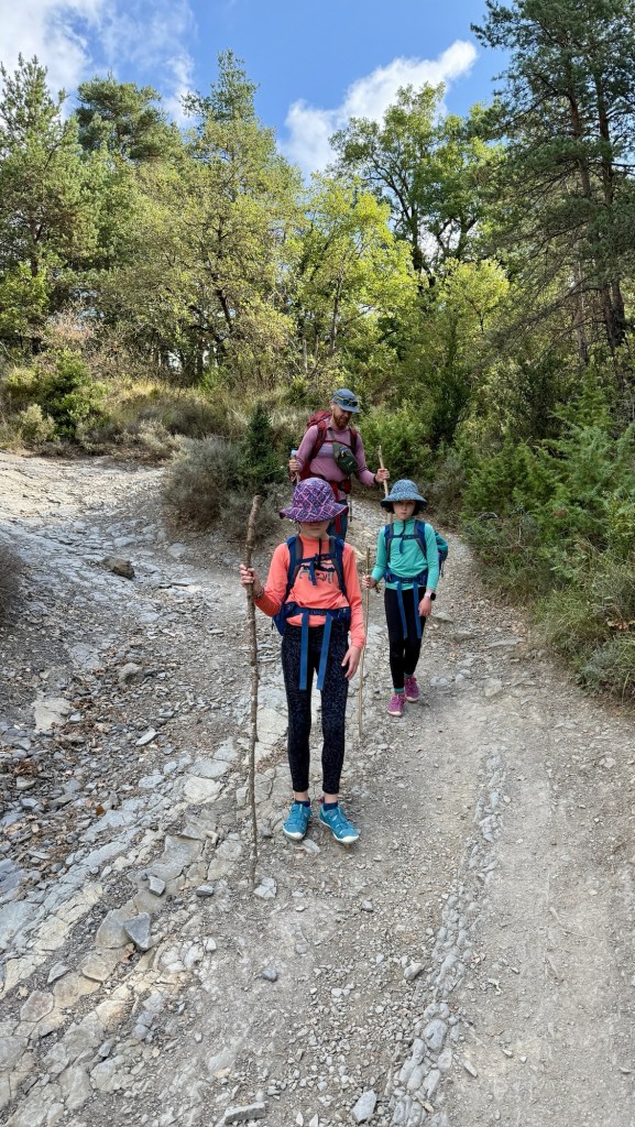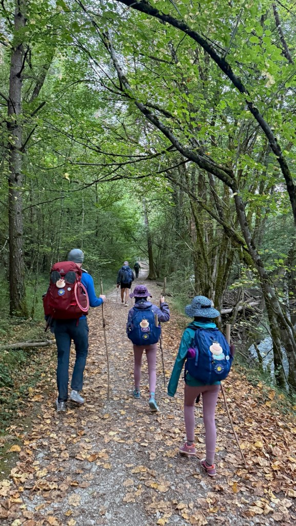 Entertainment on the trail took a new turn when the girls insisted on listening to How to Defeat a Daemon King in 10 Easy Steps. Since Max’s phone speaker couldn’t compete with crunching boots and birdsong, we improvised: one AirPod in his ear, narration slowed to 0.8x, and Max repeating the story out loud as we walked. It required a strange kind of multitasking—don’t trip, keep the plot straight, deliver the lines—but somehow it worked. The girls loved it, and even Shaina admitted it added fun to the miles.