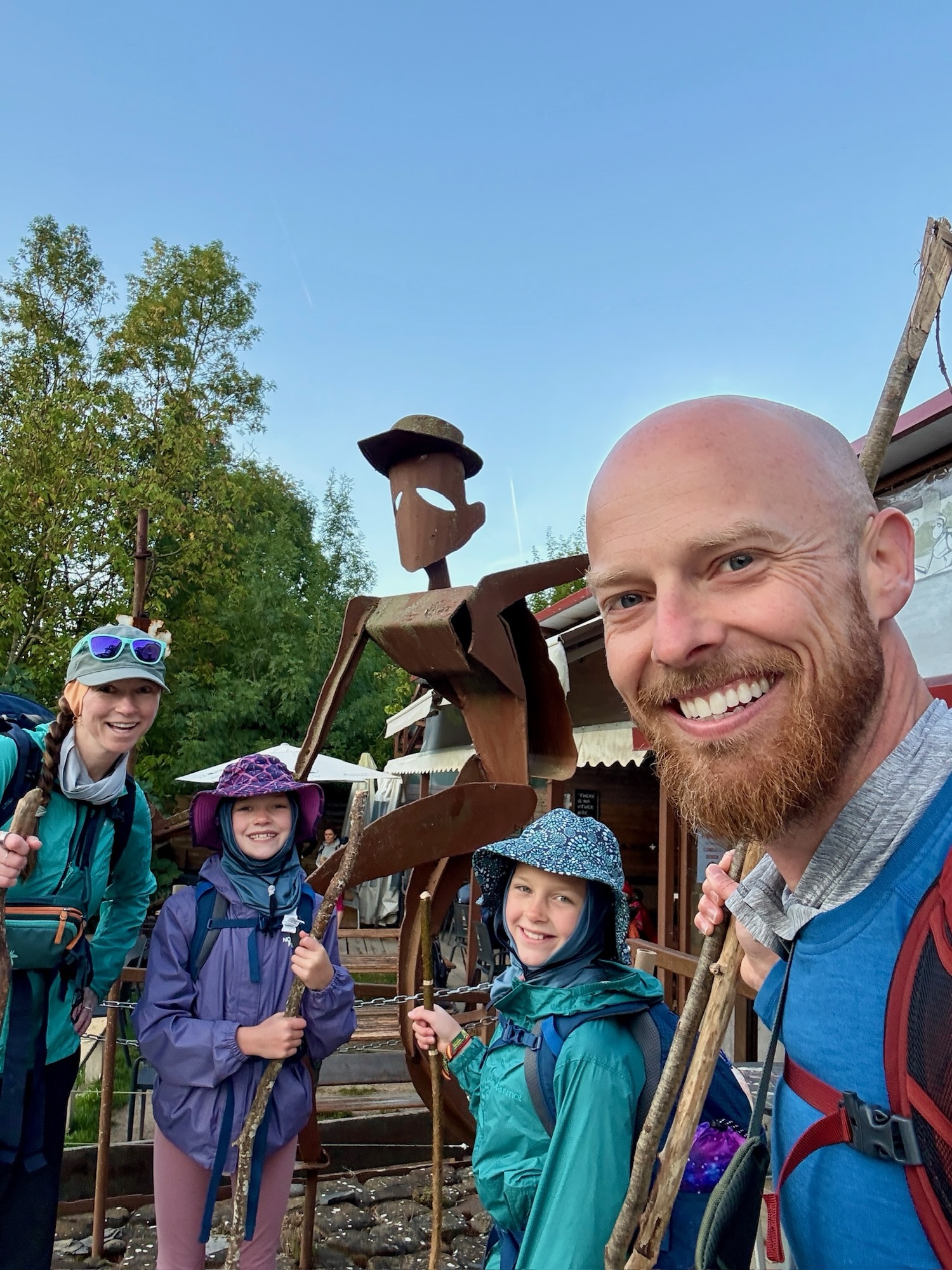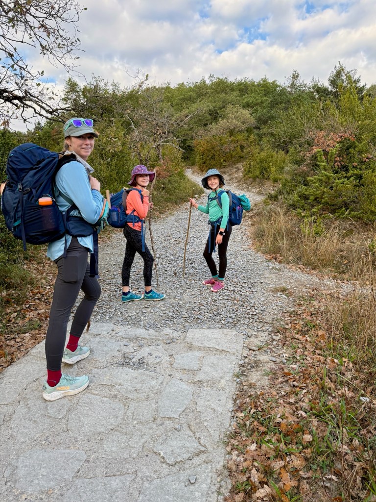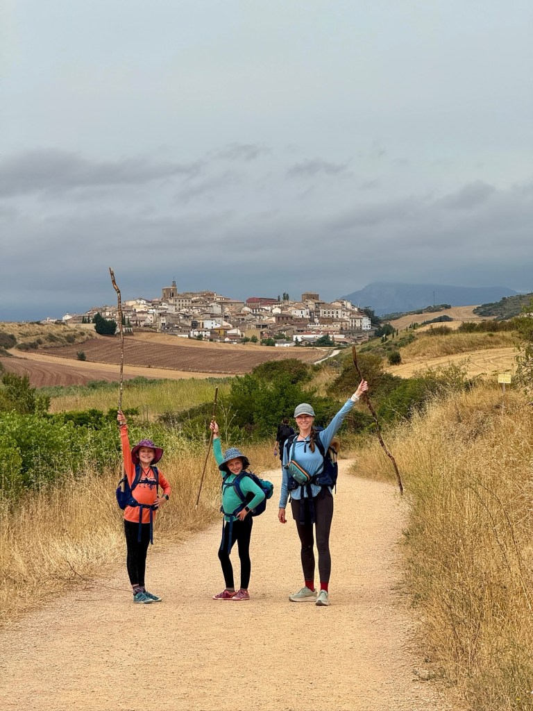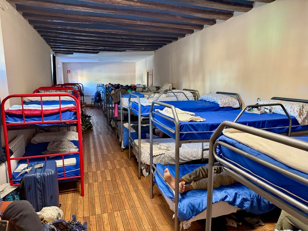 That stage was harder on Max—descending technical terrain lit up his right kneecap with every step, though uphill remained painless. Still, we pressed on, narrating the Daemon King story yet again, which has become a kind of trail tradition. After about 5 hours we reached Pamplona, arriving so early that the convent where we were staying hadn’t opened. Max held our spot in line while Shaina and the girls went for ice cream. With only 18 beds available, it was worth the wait.