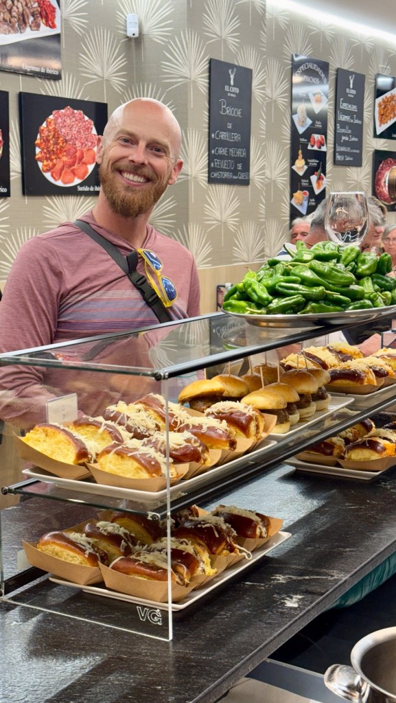 The next morning’s short walk into Logroño felt effortless after a blissful sleep-in sesh. Crossing the Ebro River, the city unfolded with charm that somehow survived its size—cobbled lanes, riverside promenades, and legendary tapas bars along Calle Laurel. Dinner became a moving feast: jamón ibérico–wrapped asparagus, croquettes, cannelloni stuffed with pâté and béchamel, and smoked salmon tartar. Each stop dotted with a glass of wine or beer and round of Hearts with the girls. Ice cream followed, along with familiar faces Roger and Aggie from Iowa. Last year, on their very first day near Saint-Jean-Pied-de-Port, Aggie broke her arm. But here they were again, smiling and determined to walk on. It was an amazing story of determination: to return to a dream after a devastating hiccup showed the enduring pull of the Camino.