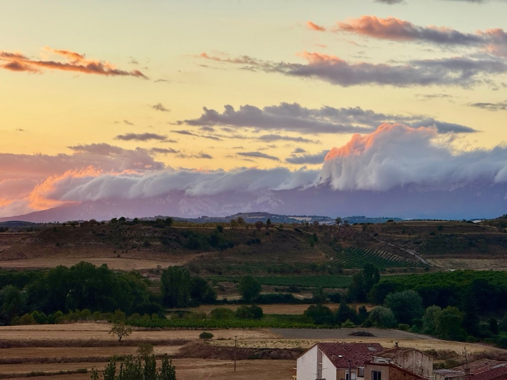 Viana itself was a revelation: a lively old town perched on ramparts, tapas spilling into the streets, and the haunting open-air ruins of the Iglesia de San Pedro. At sunset, the whole sky lit up in a spectrum of orange, pink, purple, and blue, with jagged ridges in the distance whipping up the clouds into wild shapes. It felt like a glimpse into the land of Faerie.