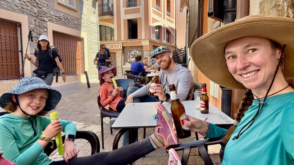 By the time we reached Azofra we were ready for rest, and the albergue’s courtyard fountain turned foot soaking pool delivered. The girls plunged their tired feet into the icy water, and soon we were chatting again with Kelli, an American from Seattle who has walked the Camino many times and now runs a food truck serving pilgrims alongside her husband in Galicia. She told us how much she loves the slower pace they’ve built for themselves, but she didn’t sugarcoat the effort it took: endless layers of Spanish bureaucracy, hard work, and tradeoffs that sometimes stung. Still, she felt it was worth the price.