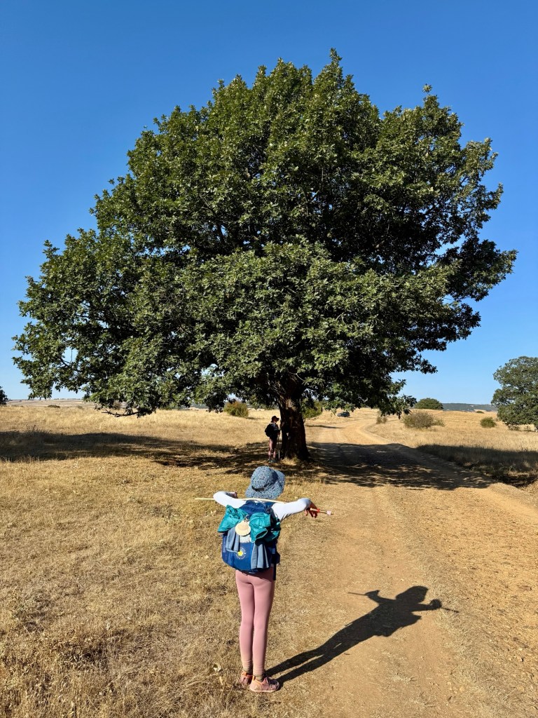 One morning we left Belorado in a fine drizzle that couldn’t decide if it wanted to soak us or let us be. The path wound through ruins and giant sunflowers, where we paused to carve smiley faces into their broad leaves. Even though the girls appreciate these little gems, they are always happy to return to the family audiobook. This week we finished the next installment of Alcatraz and the Evil Librarians and have moved on to the world of Percy Jackson.  Fellow pilgrims, and sometimes locals, often stop to take our picture or just want to tell us how they’re fascinated by a family doing such cool things. We definitely stick out on the Camino, and we love sharing our story when people ask. But when we’re at an exciting moment of the book, tiny human patience can run thin, and they are far less chatty. Luckily, when the road stretches endlessly ahead, the audiobook always helps us forget our tired feet and tummy grumbles—family story time has become sacred.