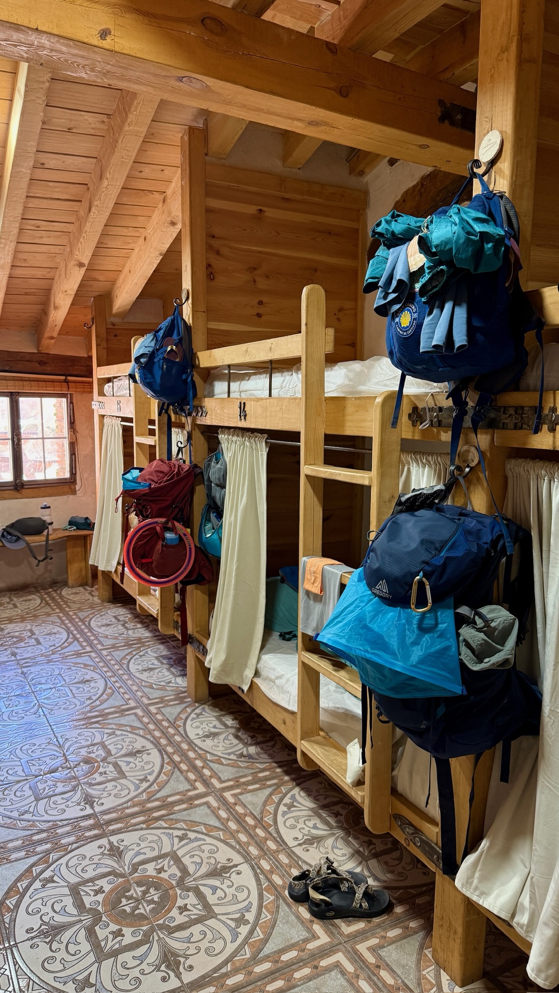That night’s albergue was unlike any other we’ve seen. Nearly everything inside had been built by the owner’s hands—beds, doors, tables, even the toilet paper holders. The light switches were these steampunk toggles that clicked with a satisfying clunk. He was a craftsman in wood, metal, ceramics, and cement, and the place felt like a working gallery. It made us dream of bringing that same quirky spirit back home one day, of filling our house with handmade touches that reflect us just as clearly.