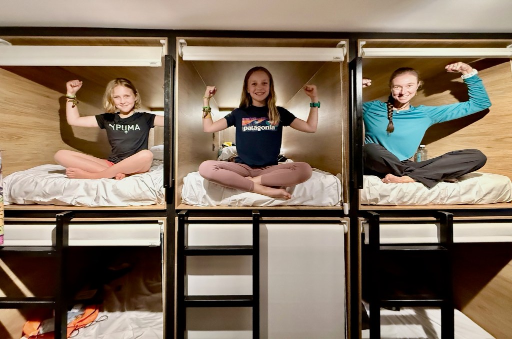 The hostel that night was fine — clean beds despite the cobwebs — but the day left us tired. Dinner was “curry” chicken (really just baked chicken with a dusting of curry powder) while the girls slurped spaghetti. Kelli joined us, and her presence turned an ordinary meal into something warmer. No alarms were set, and we slept in the comfort of a reset.