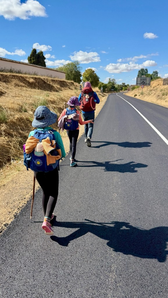Looking back across these days, the meseta revealed itself less as a barren plain and more as a proving ground. We faced bed bugs, detours, eerie ruins, locked doors, and punishing distances. But we also sat still in meditation long enough to hear our daughters’ thoughtful words, shared tables with strangers who became friends, and found small oases of joy in bibimbap, laughter, and unexpected feasts. Instead of dreading the infamous vistas of golden fields, we took joy in the well-maintained road side trail lined with broad-leafed sycamore trees nearly the whole way. This stretch of the Camino has changed greatly, and for the better, since Shaina slogged along in the brutal heat of summer without a tree in sight 20 years ago.