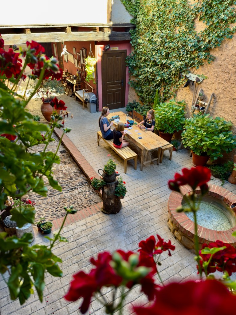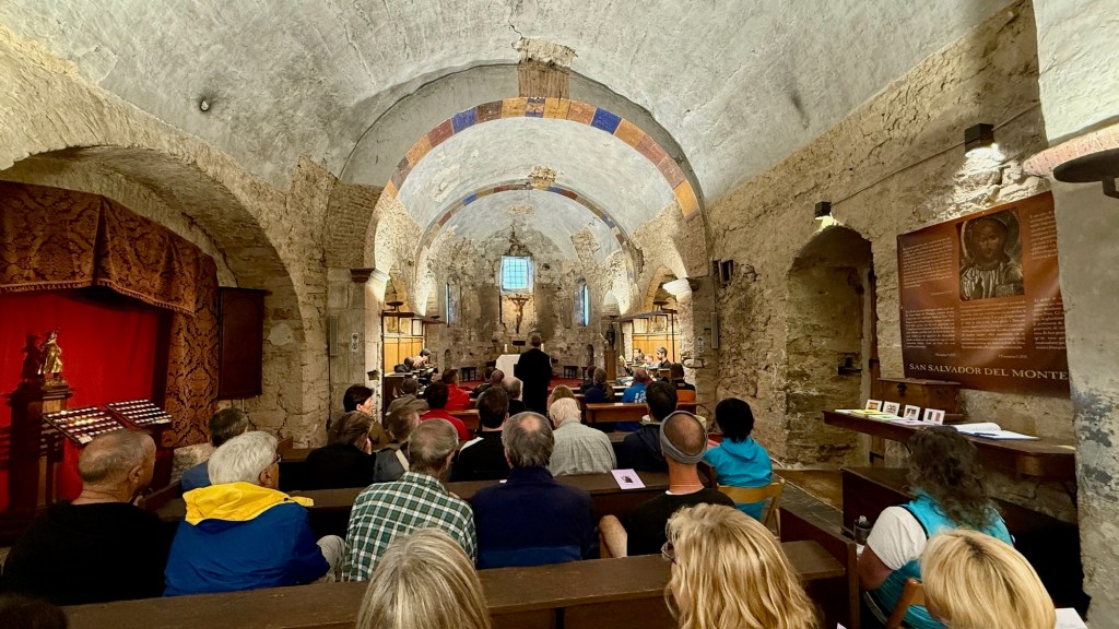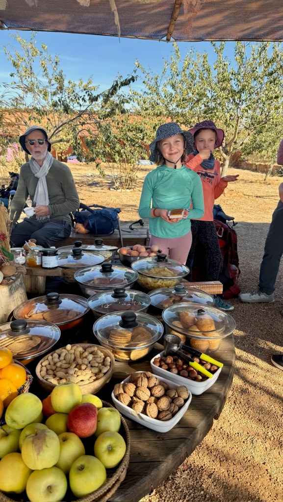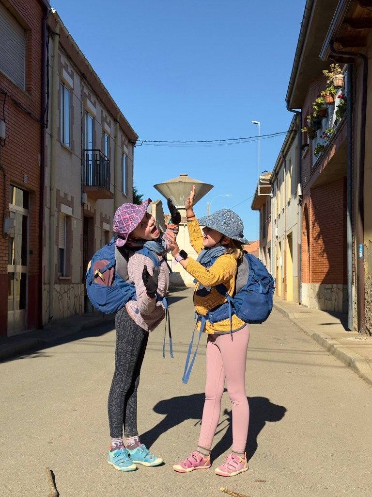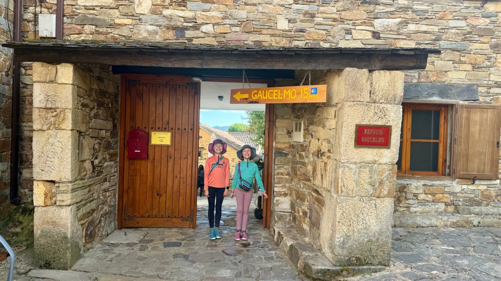 We made it to El Rabanal del Camino in time, scoring the only four-bunk private room at the “donativo” Refugio Gaulcelmo, a Confraternity of welcoming and kind-hearted volunteers, Dee, Rob, and Richard. Dinner that night was roasted chicken, crispy-skinned and demi-glazed, one of the best meals we’ve had on the Camino so far. And then came tea time back at the albergue, where pilgrims shared stories from the road and our girls took directions in Spanish from fellow pilgrim, Geraldina, on how to make macramé bracelets. Their art project complete, we joined many pilgrims at the small chapel across the street, listened to Gregorian chants by the monks, haunting and beautiful, though the girls found the ritual more tedious than transcendent. Their complaints — too long, too much standing, too much Latin — made us laugh as we tucked them into bed.