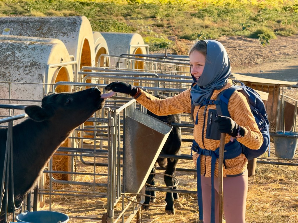 The Camino keeps teaching us that no two days are the same. One morning the road stretches out in a line so flat and featureless it feels like we’re walking on a treadmill. The next, the path tilts upward into the hills, pulling us toward villages where ivy spills over stone walls and monks still chant at nightfall. Between those extremes, we find little moments that keep us going: a calf’s wet nose nuzzling Finlee’s hand, a courtyard filled with gardenias and laughter, a shared bottle of Rioja around a modest apartment table.