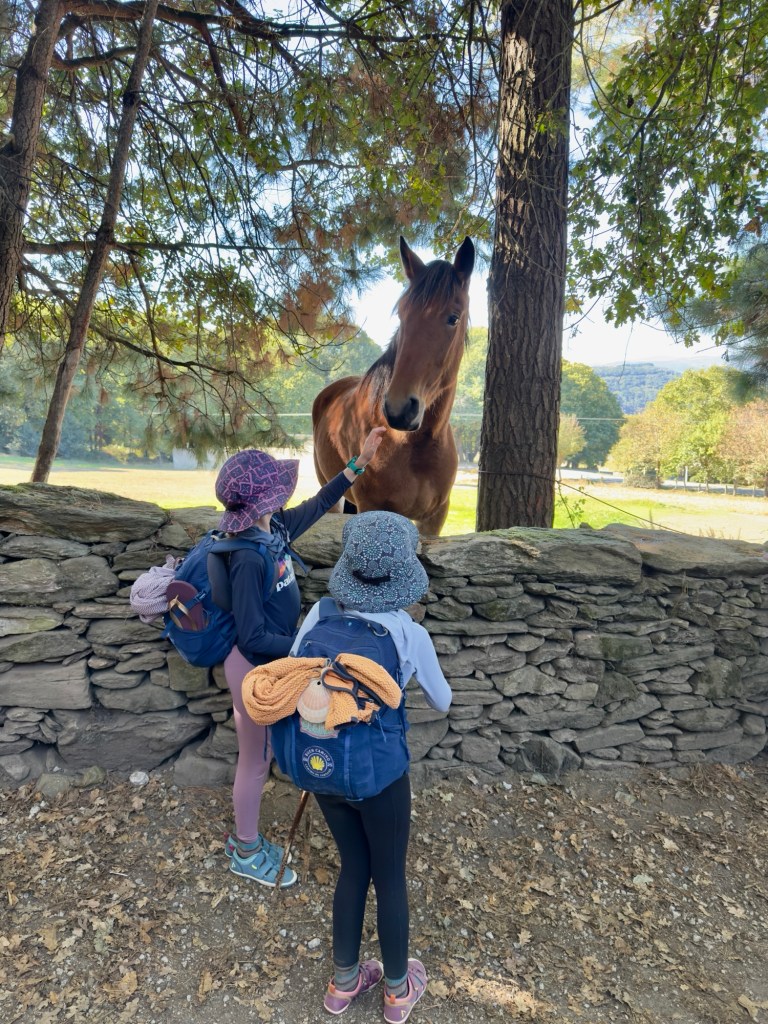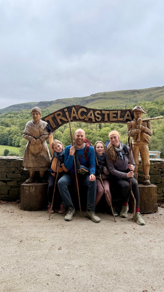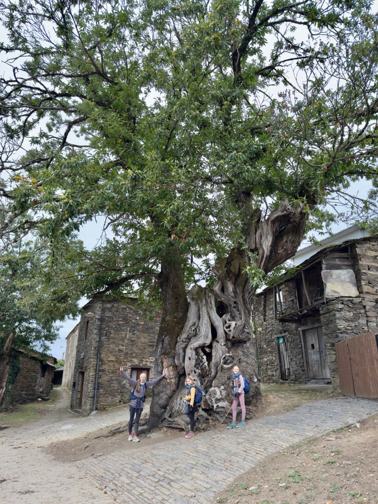 Not long after, we reached Ramil, home to an enormous chestnut tree said to be around eight centuries old. Its trunk was wide enough for three of us to stand inside if it were hollow. The girls circled it reverently, tracing their hands along the grooves. They decided it was “the best tree of the Camino so far,” and honestly, they were right.
