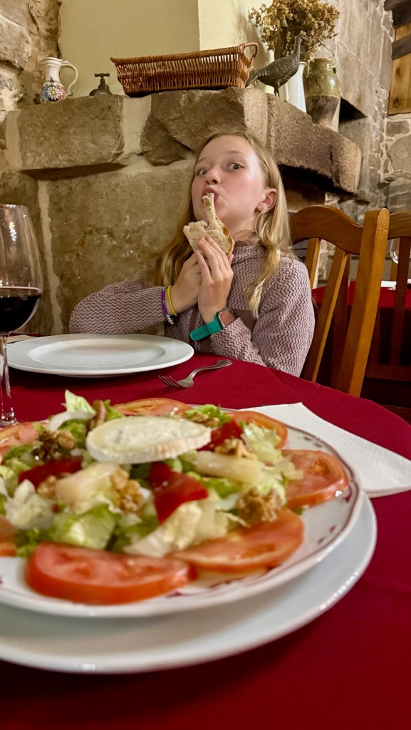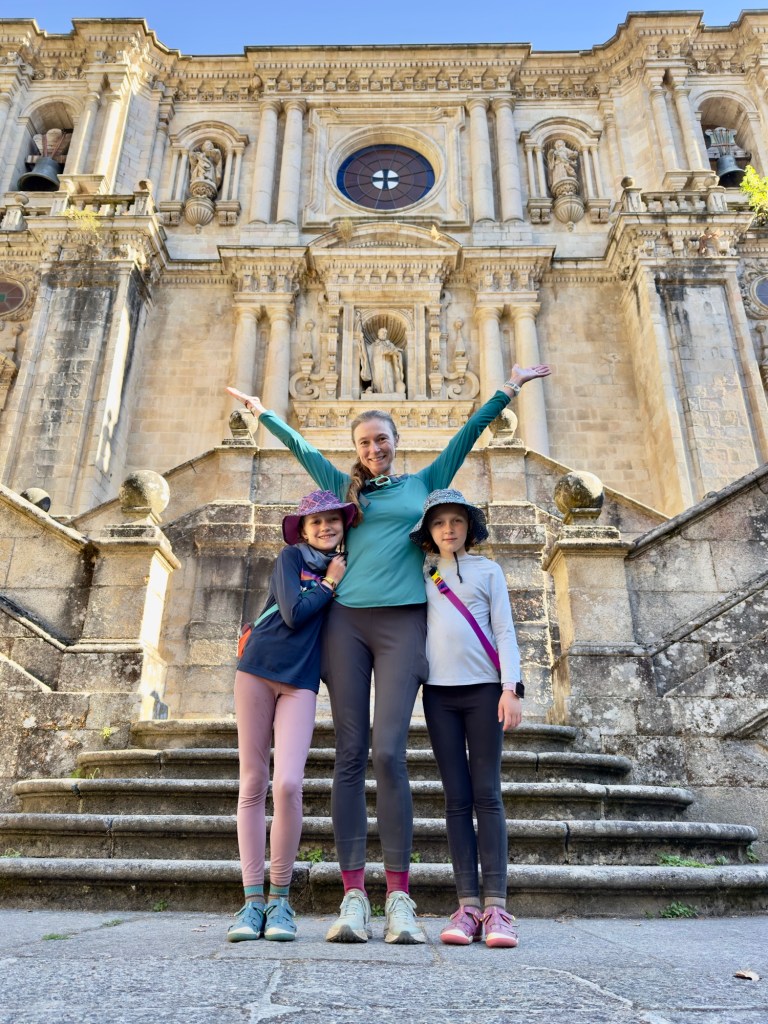 Lunch that day was something special: simple food, perfectly done, eaten slowly with the kind of appetite only walking creates. The true star of the meal was tomato carpaccio on top of a toasted seasoned bread. I will be attempting to replicate this in the near future. Later, during a monastery tour, Max managed one of his more memorable language mistakes. Trying to ask the monk how many monks lived there (monjes), he instead asked, “¿Cuántos gnomos viven aquí?” The gentleman looked utterly baffled until Max doubled down and clarified helpfully, “Tú eres gnomo. ¿Cuántos gnomos viven aquí?” – “You are a gnome. How many gnomes live here?” The poor man gently explained that gnomos are tiny fantasy creatures, while he is, in fact, a faithful monk of the Benedictine order. Max’s face turned as red as a Rioja, and when he told Shaina and the girls, they nearly fell over laughing. “How many gnomes live here?” became an instant family catchphrase — proof that on the Camino, humility is alive and well.