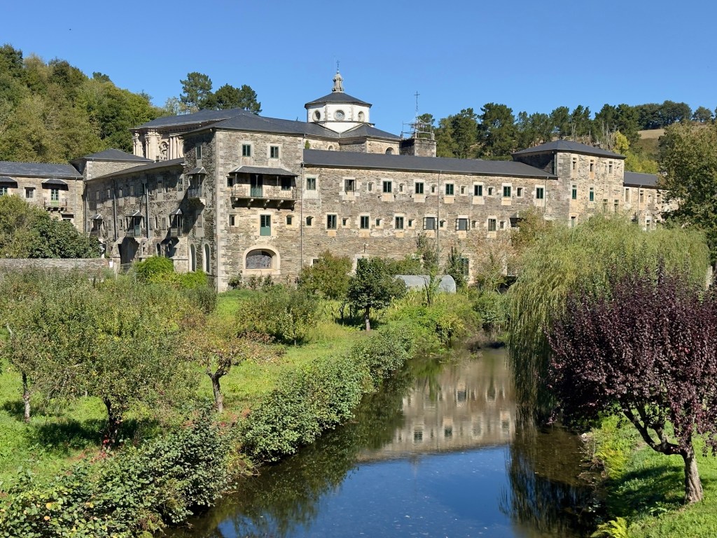 The monastery at Samos appeared like a trick of the mist — massive and gray, dominating the valley. We’d planned to stay there for the novelty of sleeping under its roof, but the cold inside gave us misgivings as we imagined what it would feel like at 2am if it felt like the inside of an ice box at 1pm. When the hospitalero explained that they had no blankets or sheets because of a bug issue, our decision came quickly enough to give whiplash as we bolted, laughing the whole way to the next option.