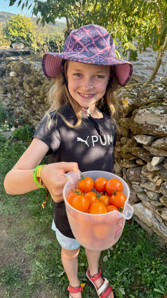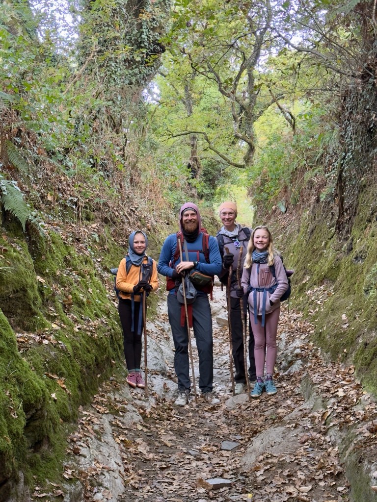 Our house in A Tellada, half a kilometer off the trail, felt like a retreat, and was easily one of Shaina’s best accommodation finds. The owner had stocked the kitchen with groceries, fresh veggies and fruits, and a homemade tortilla española as a welcome. We cooked dinner together, opened the windows to the quiet hills, and ended the day with coconut cookies and tea. Max had picked up the family cold by then and we all went to bed early, in hopes to kick this lingering illness.