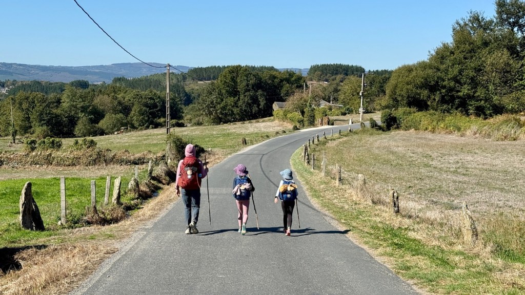 By late afternoon, the hills opened up to Ligonde, a tiny village scattered across rolling green. Our inn sat off the Camino on land that had been in the same family for six generations. The owner’s son told us the story as he checked us in — how his great-great-great-grandfather bought the property 270 years ago, how the house has stood through wars, droughts, and the slow migration of pilgrims like us. We spent the afternoon in the beautiful gardens watching a storm roll in, as we sat at some tables and journaled while our tiny adventurers explored the property.