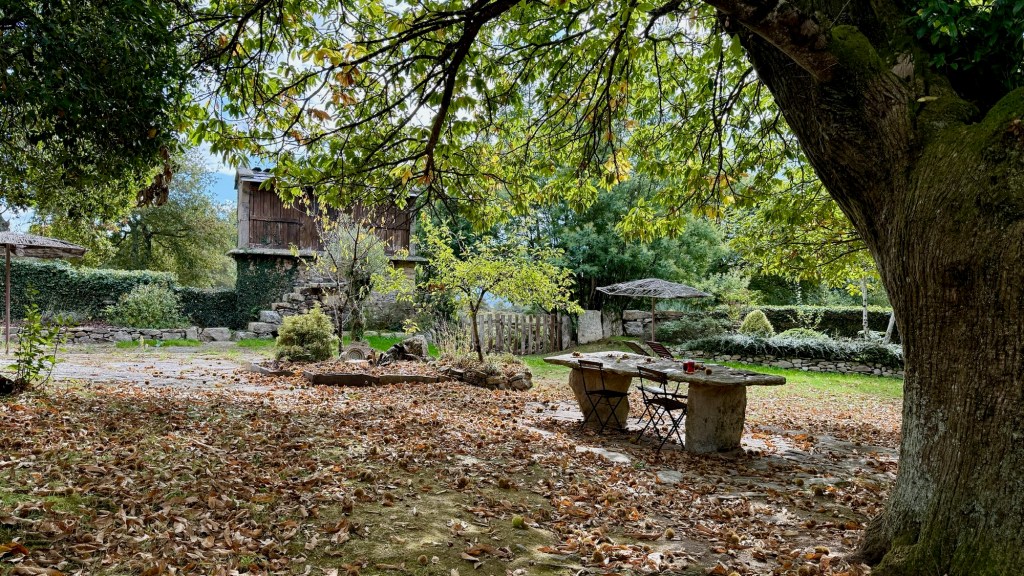 The descent out of Fonfría led through a string of tiny hamlets where the houses sit directly above the barns. In this part of Galicia, people started keeping their cows below them so the animals’ warmth would rise through the floors in winter. It’s efficient, but the smell takes some getting used to. Cow manure lined the narrow stone streets, and the air hung heavy with it. It’s the sort of thing that would be miserable if you let it — or funny if you don’t. We chose to laugh and call it “local flavor.”