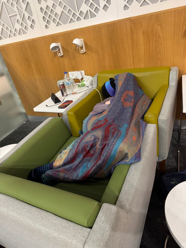 At the time, it felt like we had pulled off a daring act of international cunning. We sailed into the airport lounge and ate snacks like victorious rebels who had cleverly sidestepped a problem. Max’s optimism was held together with a frayed string; Shaina genuinely believed good vibes might be enough; the girls were just excited about free hot chocolate.