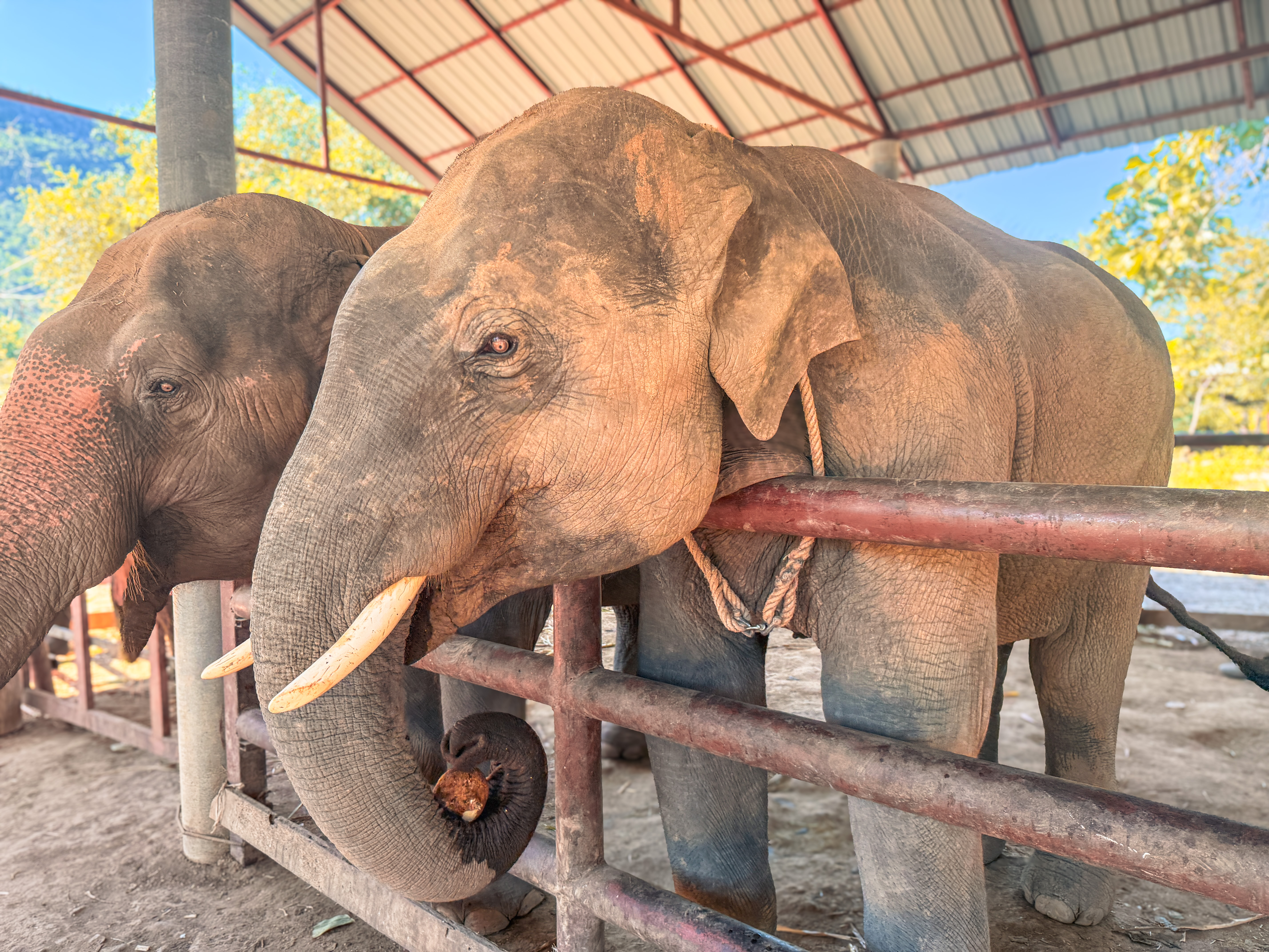 We climbed into a private minivan before sunrise and headed west toward Elephants World, an elephant sanctuary outside Kanchanaburi that focuses on caring for older, injured, and rescued elephants who can no longer work in logging or tourism. The emphasis here is on feeding, bathing, and taking care of the elephants, and explicitly eschews riding them. From the beginning the place felt thoughtful and calm rather than performative.