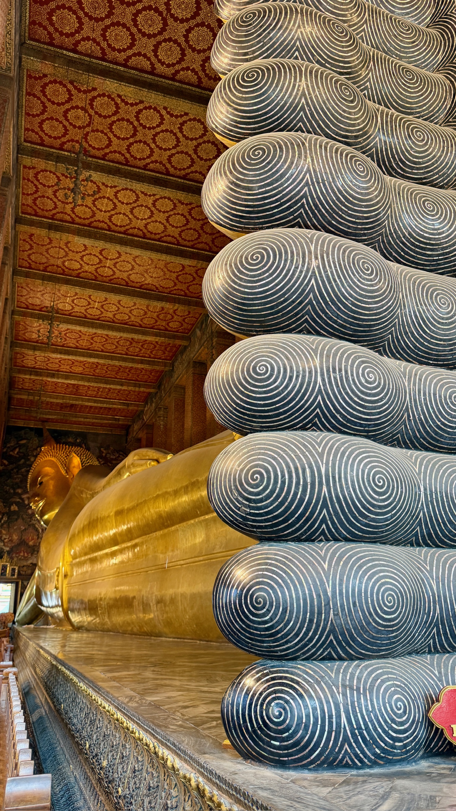 With the stress released, it felt right to do something grounding. With no real plan and a quick check-in with ChatGPT, we set out toward Wat Pho, just south of the Royal Palace. Wat Pho is one of Bangkok’s oldest and most important temples and is considered the birthplace of traditional Thai massage. It is also home to one of the most famous religious images in Thailand.