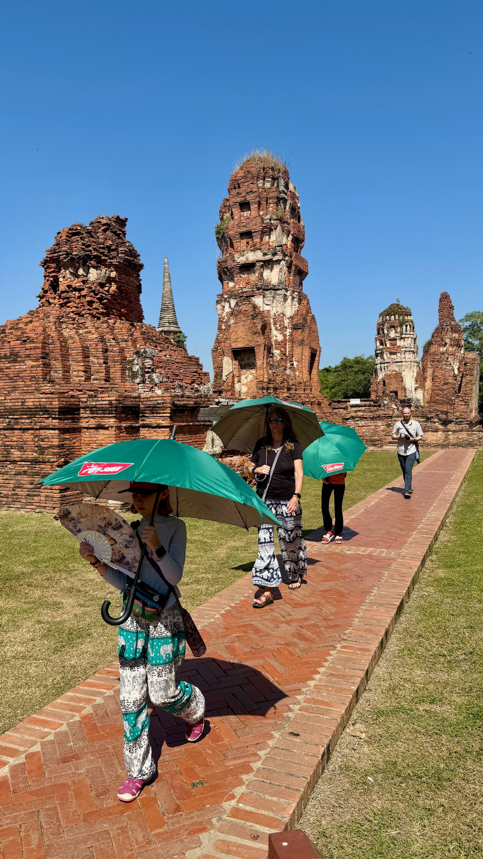 Alarms went off at 6:00 and we moved the troops with just enough efficiency to be ready for our pickup. Today’s plan was a day trip north to Ayutthaya, the ancient capital of Thailand and one of the most historically significant sites in the country. We met our guide, Kevin, at 7:30 and immediately dove into the organized chaos of Bangkok traffic before heading about 80 kilometers north. From 1350 until its destruction by the Burmese in 1767, Ayutthaya was the royal capital of Siam and one of the wealthiest cities in the world, a hub of diplomacy and trade connecting Asia with Europe, China, and the Middle East.
