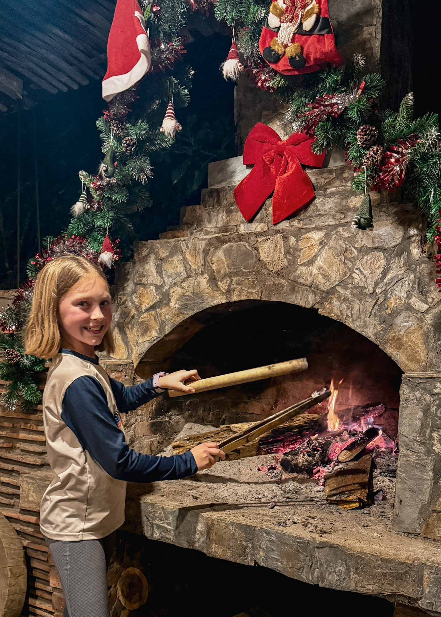 On December 21, when at home we’d likely be throwing our annual party to celebrate the Winter Solstice, we decided to go on an adventure a bit further afield. It was our last full day, so we rented motorbikes planning to explore surrounding caves and waterfalls, but an hour into our journey mechanical issues cut the ride short. Instead of forcing a replacement plan, we returned early and leaned into what had been working all along. More journaling. More reading. More time near the fire. No one pushed for more. Although the girls really leaned in to the fire, constantly tending and tinkering and keeping the lounge aglow with warmth, quite apropos on this shortest night of the year.