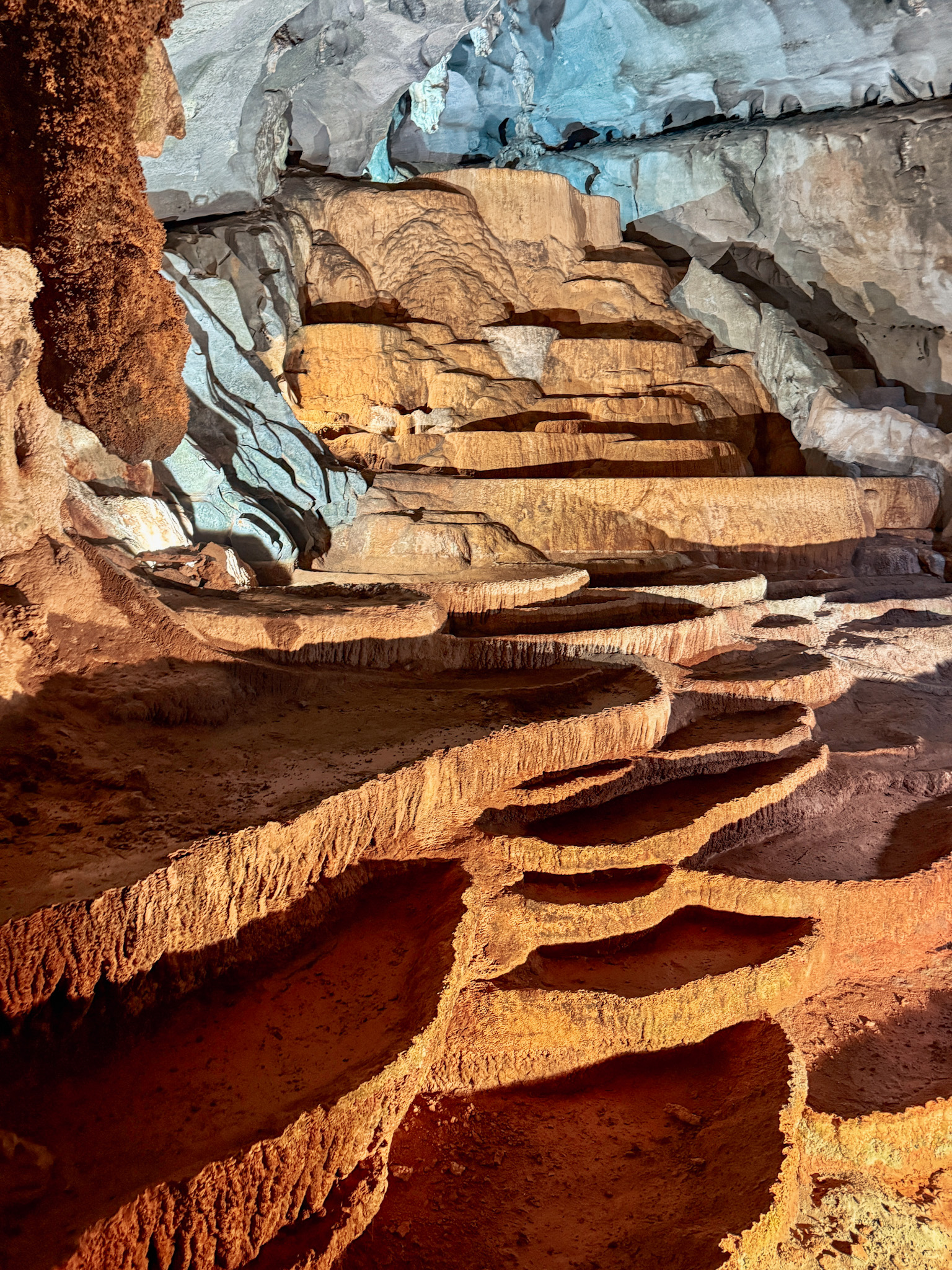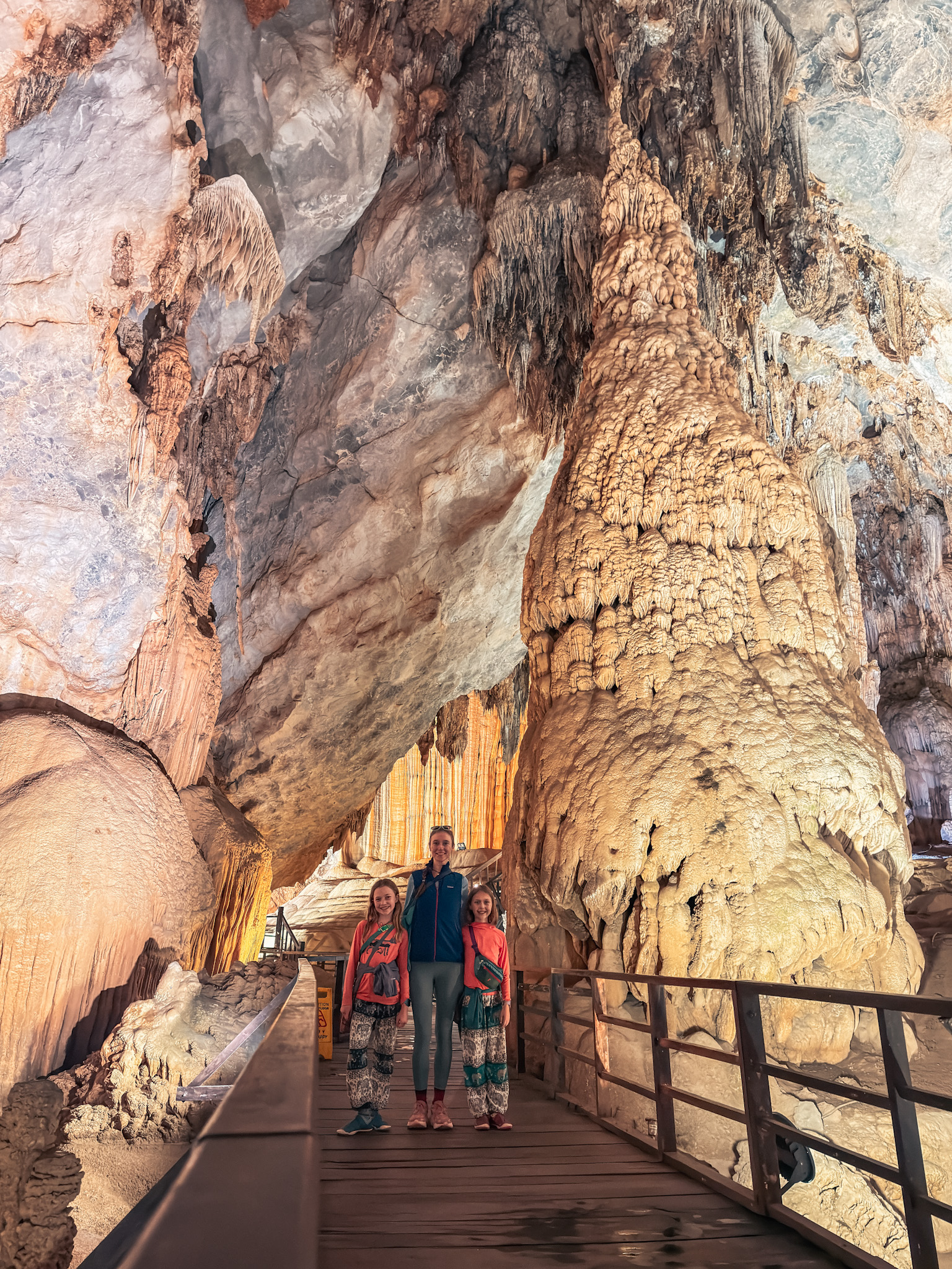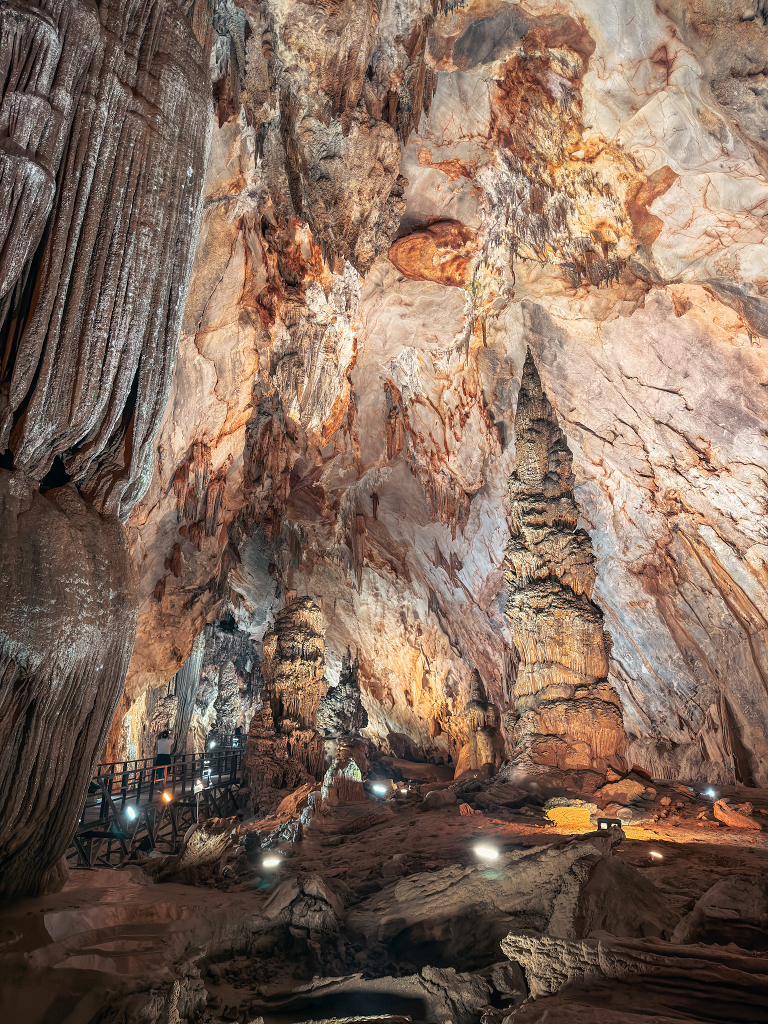 After a quiet row 1km into the cave, we turned back and eventually disembarked to walk through a dry section of the cave. Raised boardwalks led us through room after room filled with towering stalagmites, hanging stalactites, and formations that looked like frozen waves spilling from ceiling to floor. Impressive in the most literal sense of the word.