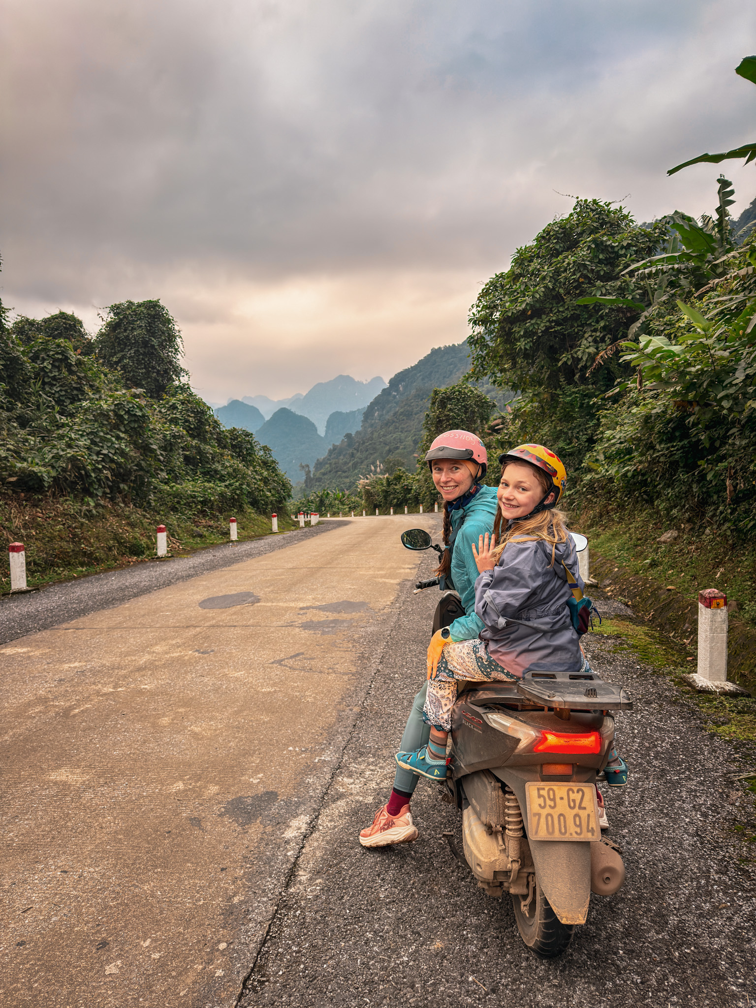 Our final full day in Phong Nha came fast, and we tried to pack it to the edges. We were up early, sneaking in an hour of homework for the girls before breakfast, then turned our attention to logistics. Transportation for the day was a pair of Honda 125cc automatic scooters. Nothing fancy, but both were in solid working order and felt dependable enough for a full day of riding.