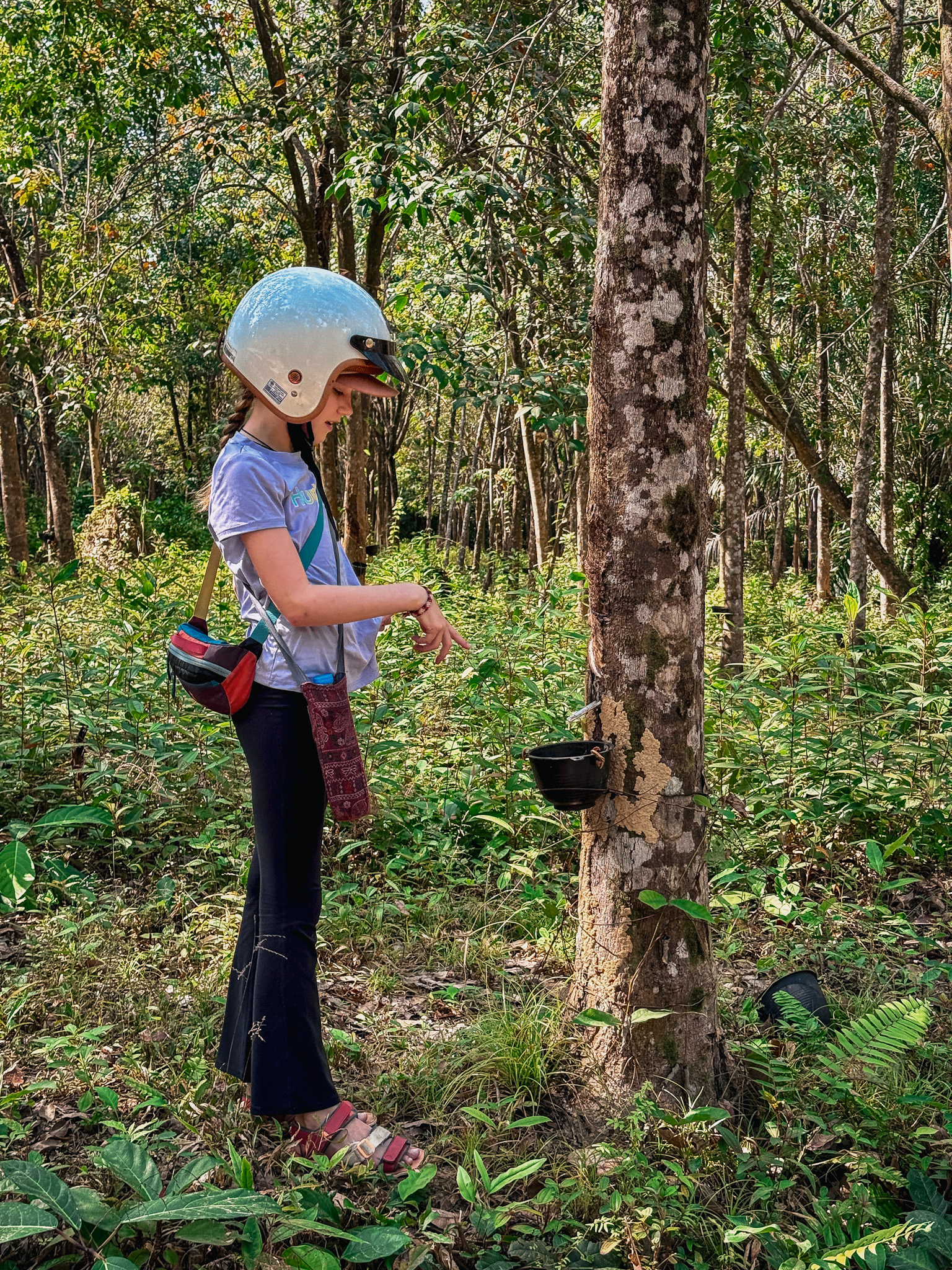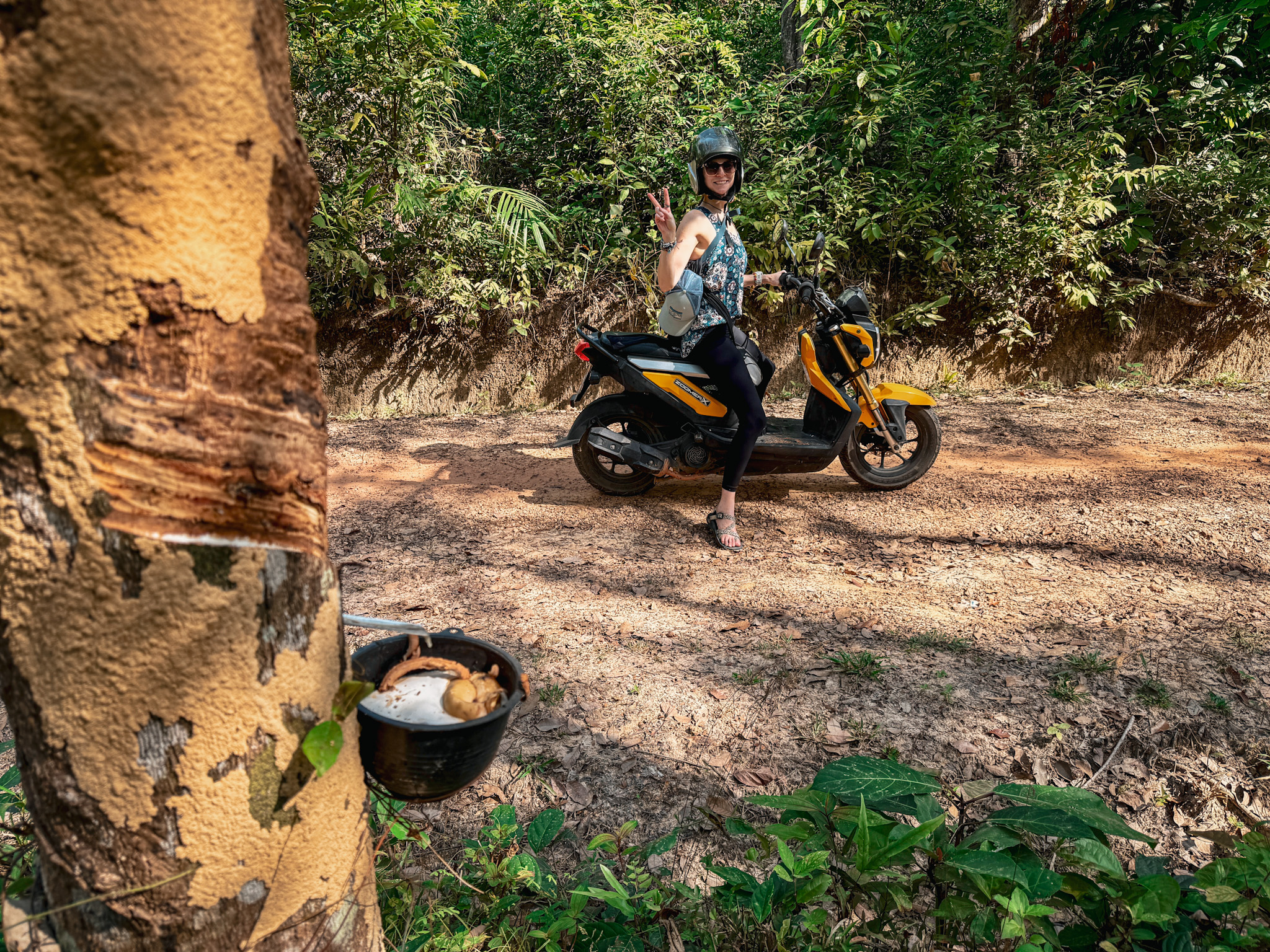 The next day, we set out to explore the island properly. We headed to Yaem Yang Point on the far southwestern coast, following a dirt path winding through rubber tree plantations, cashew orchards, and small farming homesteads. It felt like Thailand from a bygone era, with its dusty potholed dirt roads winding between sparely populated tropical greenery, before resorts and mass tourism arrived and changed the vibe.