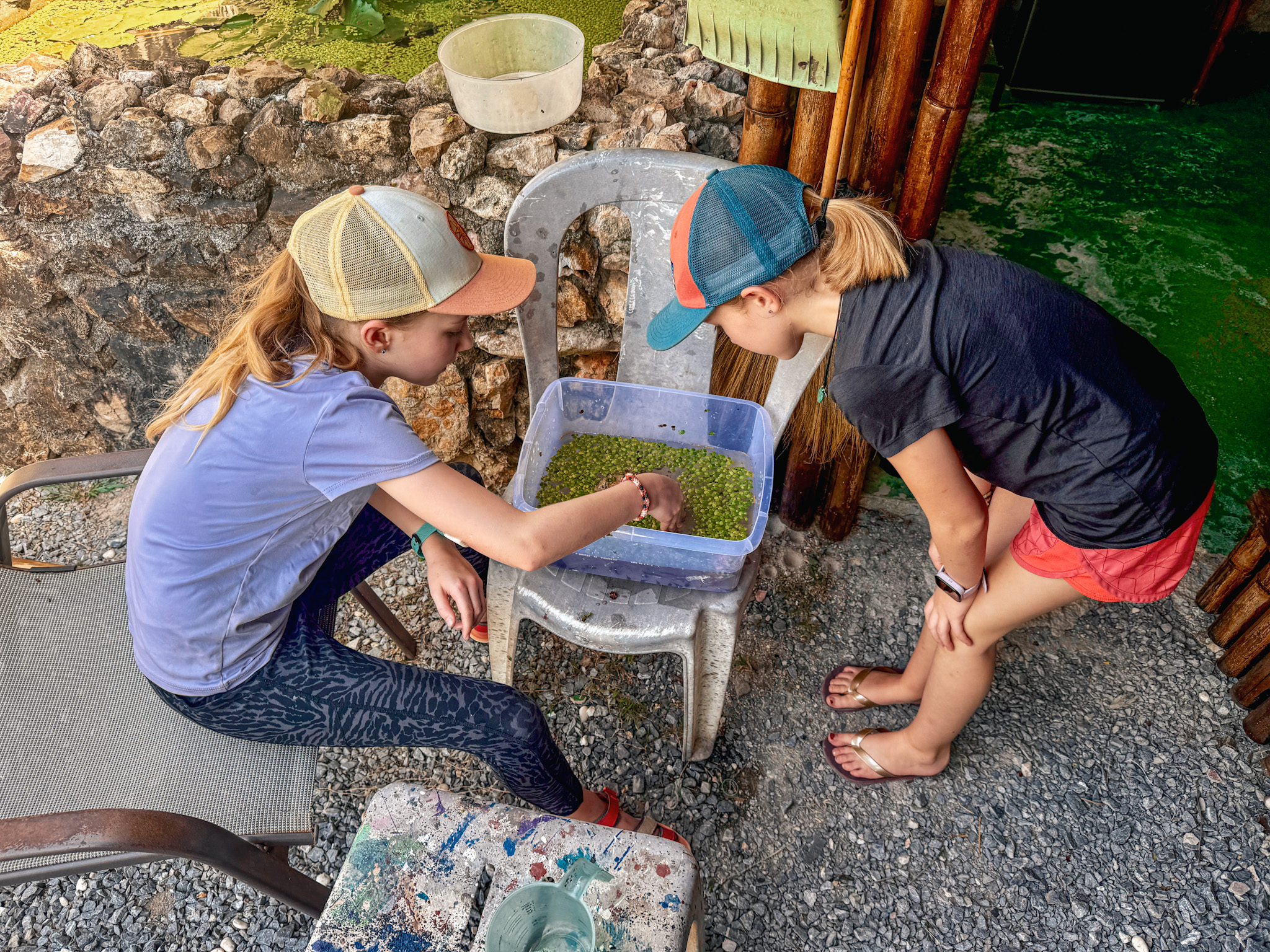 The girls hit it off immediately. Socialization must be truly hardwired at their age, because once play started it was as if they’d been lifelong friends. This was a repeat of their time in Singapore with other kids. It was wonderful seeing them find outdoor play with others, with no structure and very little adult supervision. They invented their own games, told each other about their travels, and everything in between.