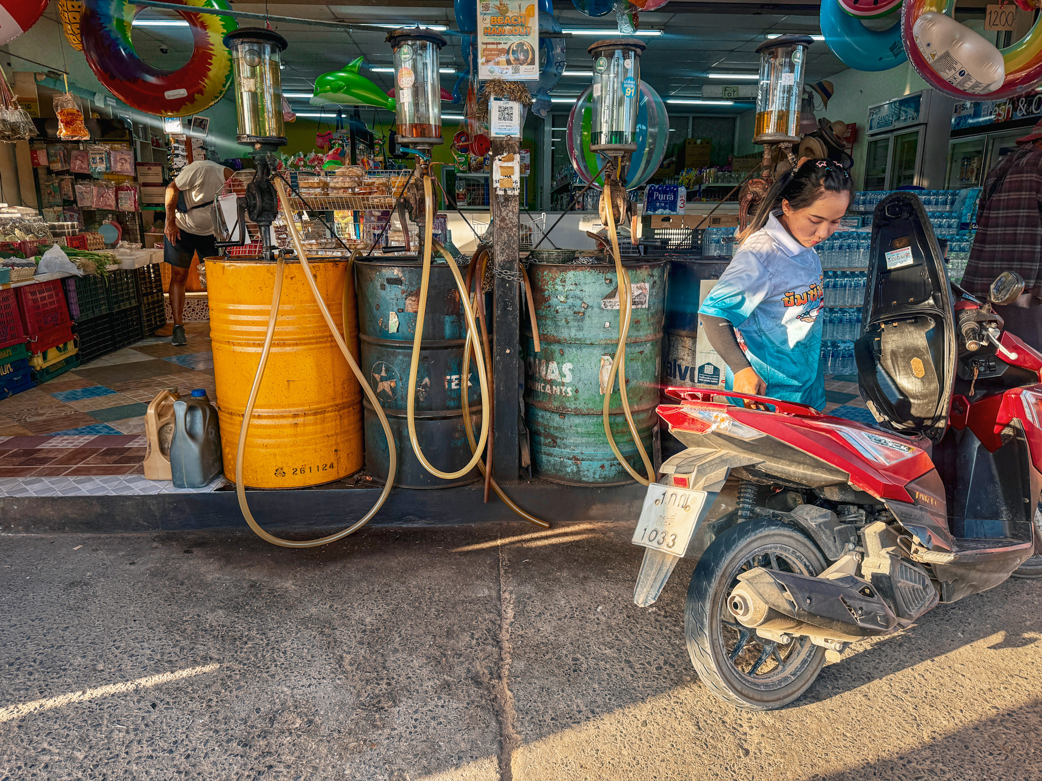 That gave Max time to follow Beu to the mechanic to assess damage from the scratches. The island isn’t that big, and we made it in less than ten minutes. After some back-and-forth between Beu and the mechanic, the verdict came: 700 baht. Twenty-three dollars.
