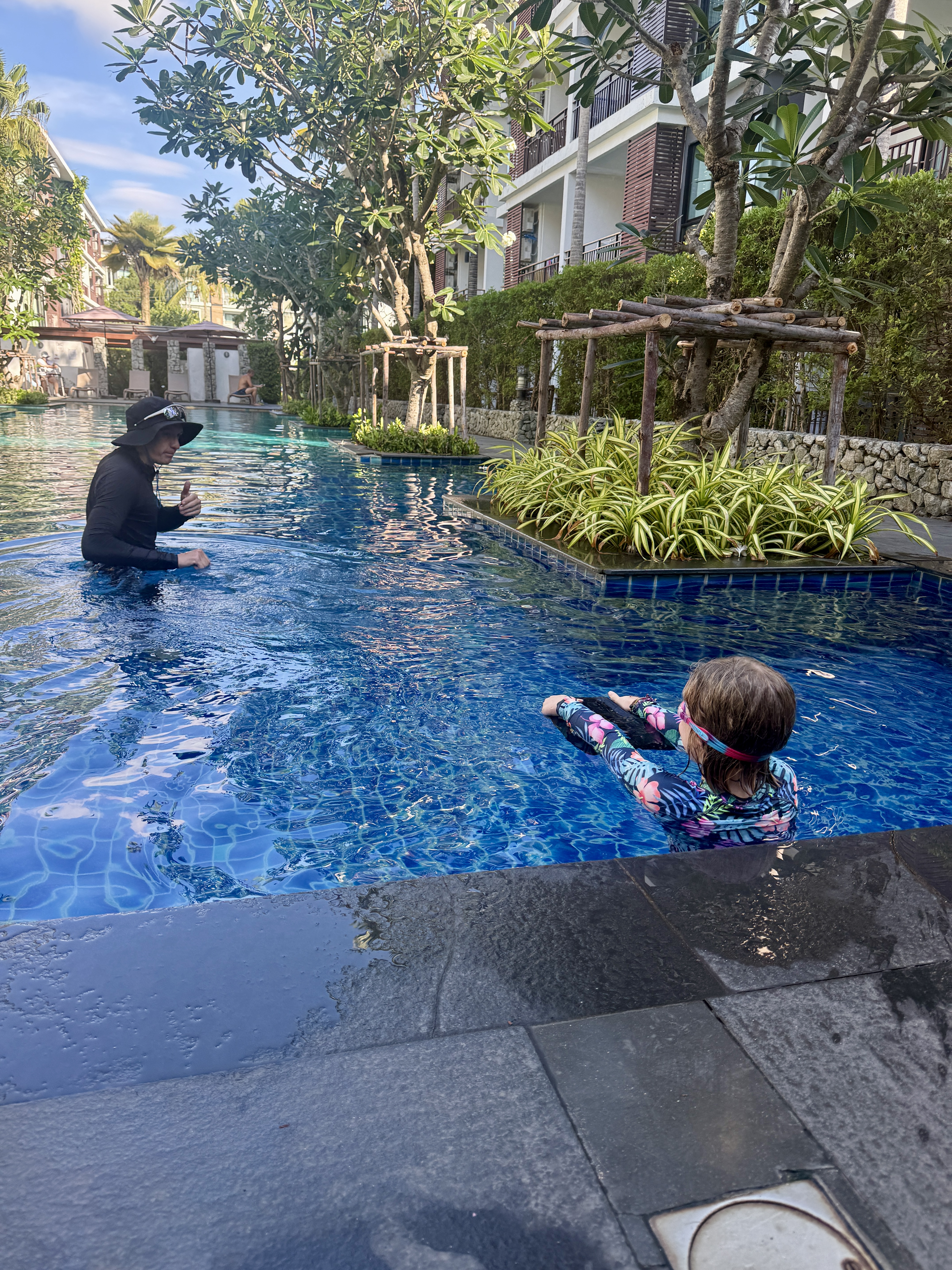 The reason this mattered is that Finlee needed a refresher on her swimming skills. She used to be a confident swimmer, but it had been a while. During the boat tour in Ao Luek there was a moment where we jumped off the boat to swim to shore and Max found himself uneasy watching her struggle. So when we approached Dimitri to give Finlee a refresher course and he agreed, we immediately booked a 45 minute session for a few days later.