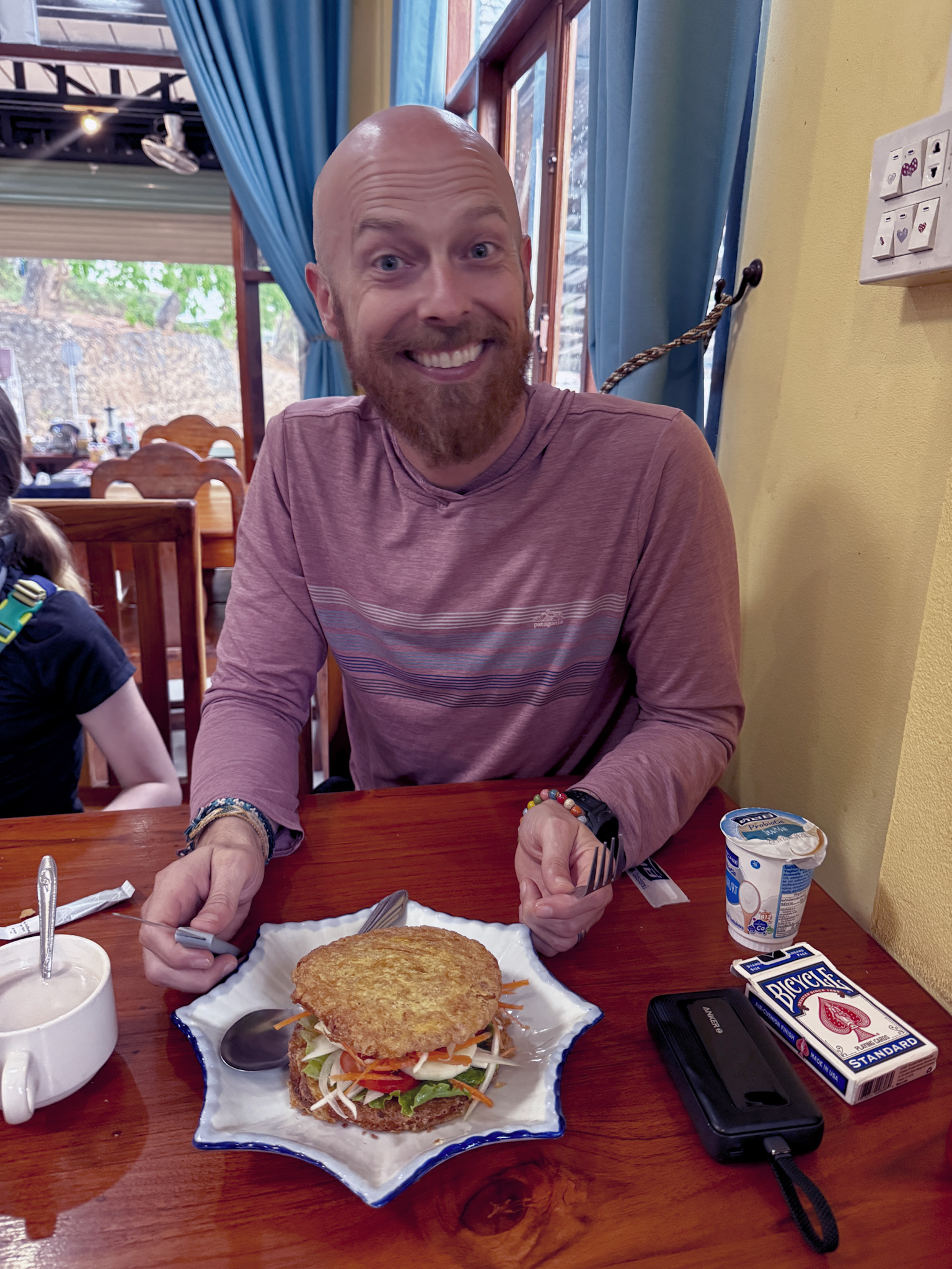 The staff at our hotel in Luang Prabang surprised us with breakfast to go—fried noodles, fresh fruit, pastries packed in takeaway containers at 6:20 in the morning. Completely unexpected and deeply appreciated.