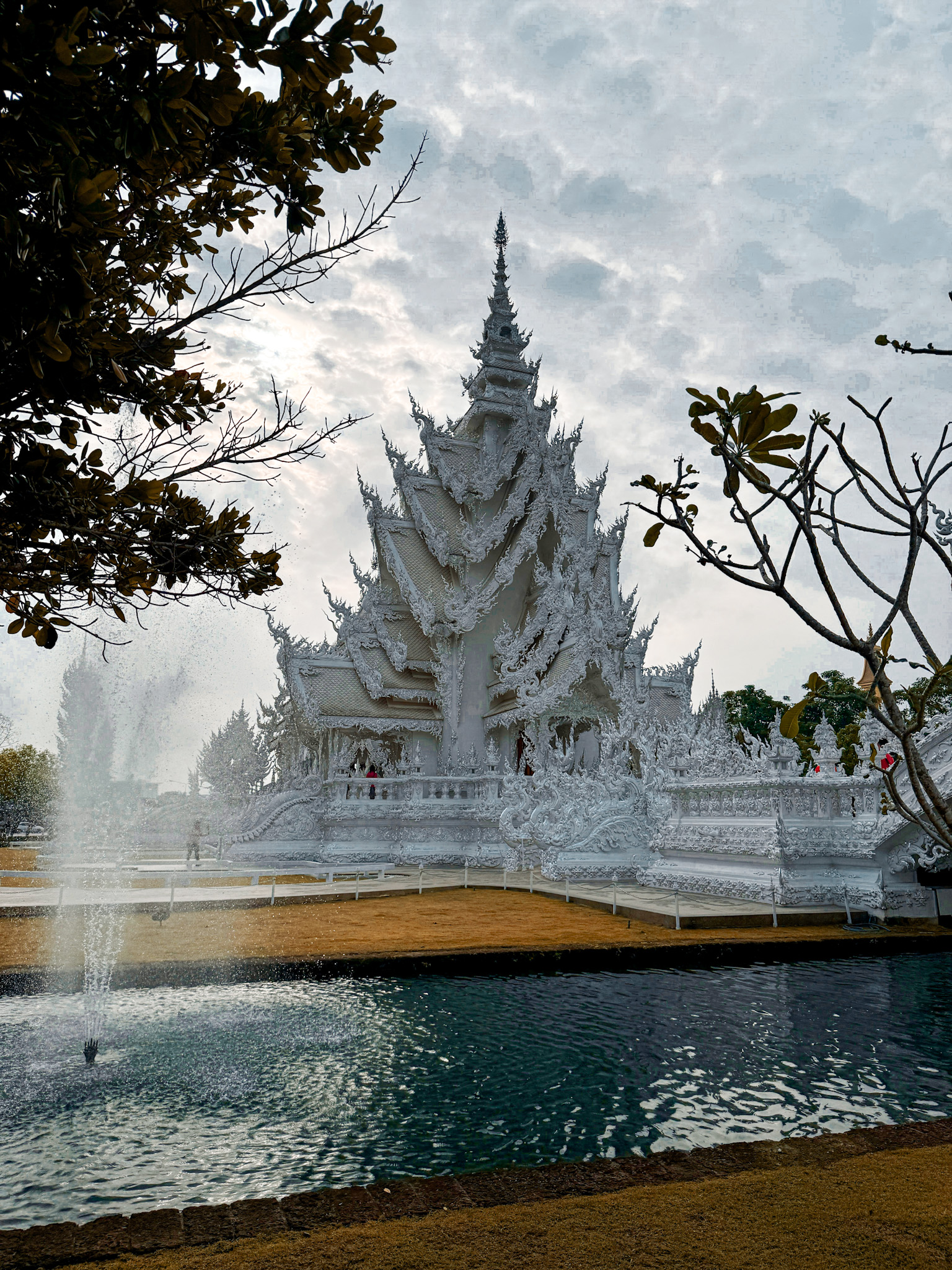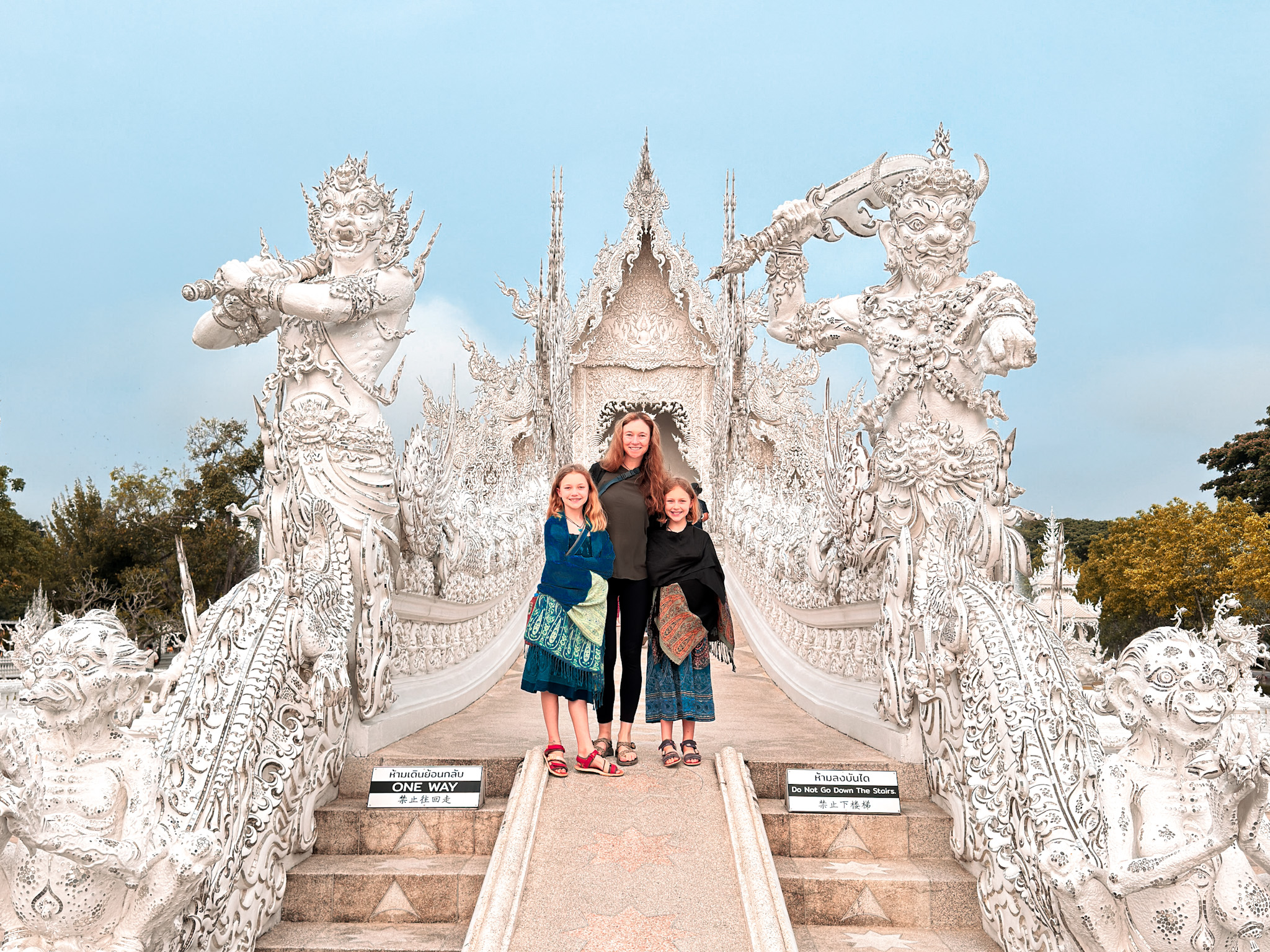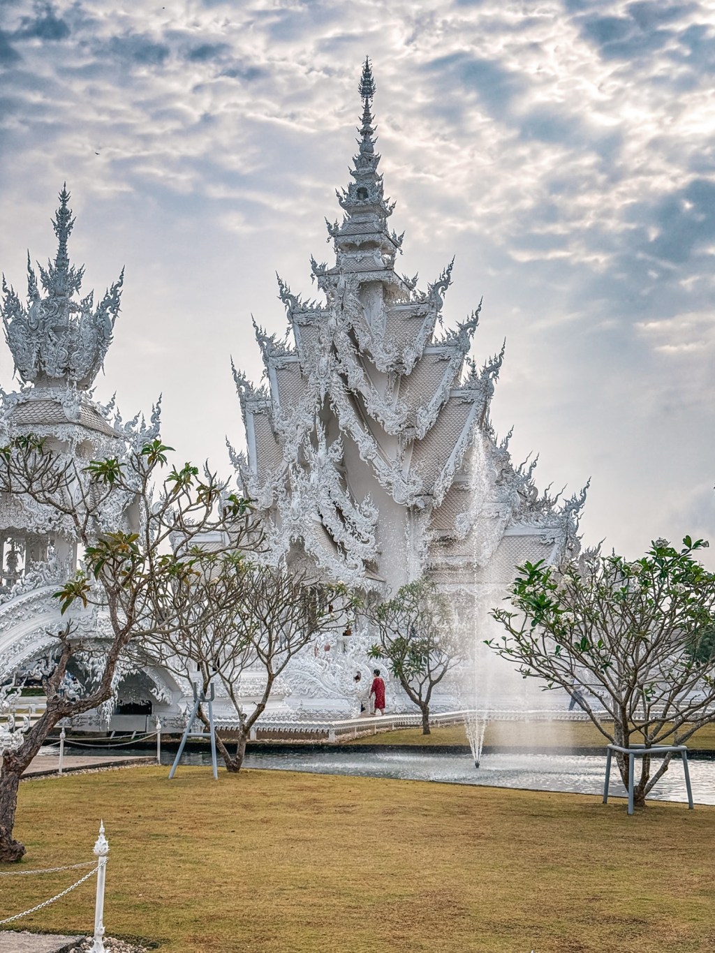We had just one day to split between Chiang Rai and Chiang Mai before our red eye flight to Taipei that night, so we woke at dawn and hit the ground running. Wat Rong Khun—the White Temple—is here, and we had skipped it not once but twice on previous visits to this town, and Shaina was insistent we make it there this time.