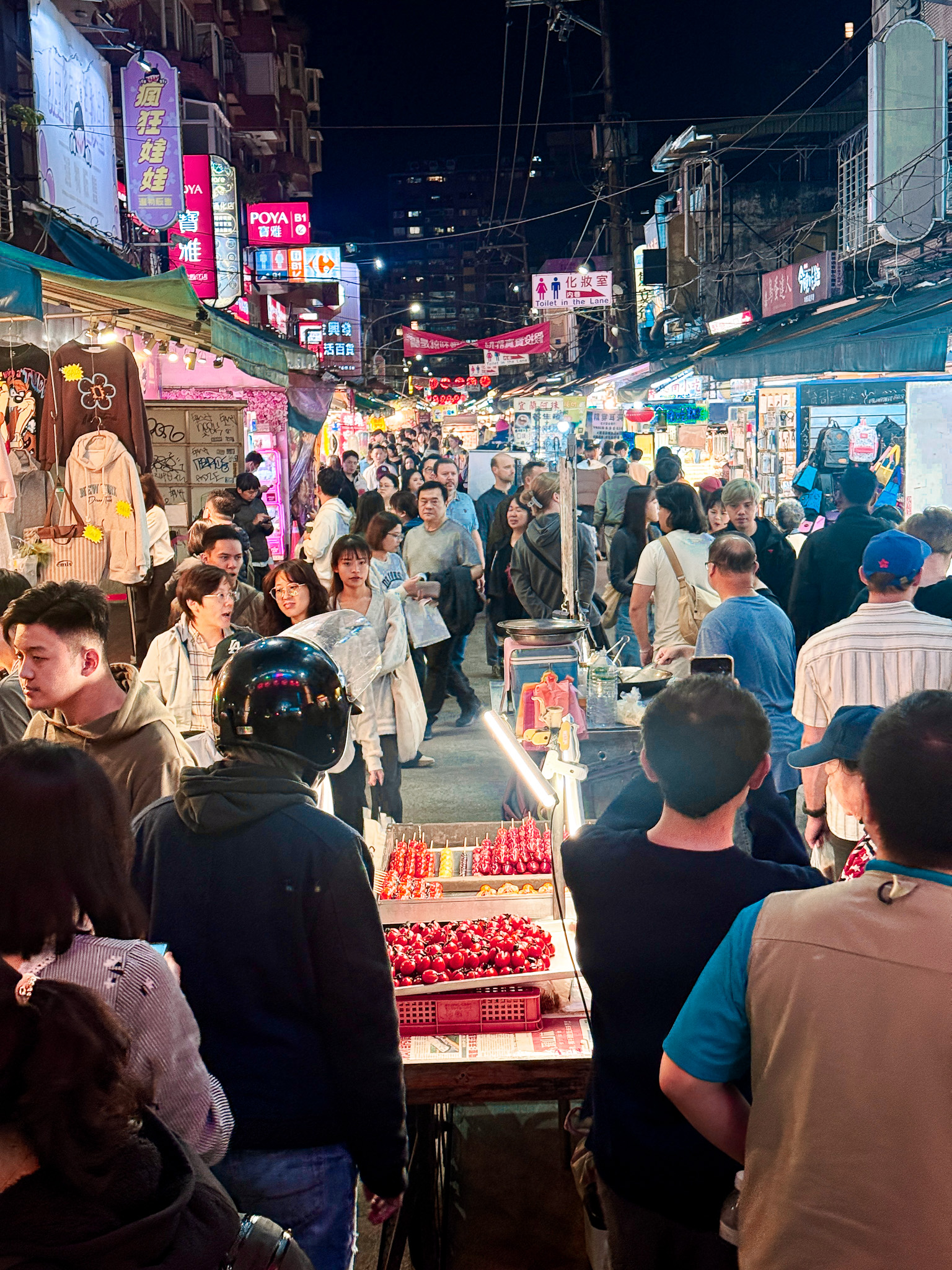We dropped her bags at the Airbnb and headed straight to a night market—one of Taipei’s many, this one tilted heavily toward food. Fried chicken, fried bread, a giant gua bao stuffed with braised pork.