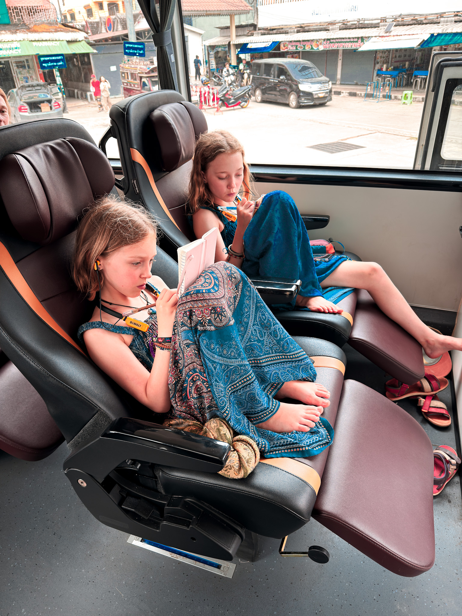 Then a bus to Chiang Mai—comfortable and very cold, the air conditioning set to a temperature that suggested the driver was transporting organs. Reading lasted about forty minutes before the winding road made it inadvisable, at which point Max and Finlee switched to music and audiobooks and let the hills scroll past the window.