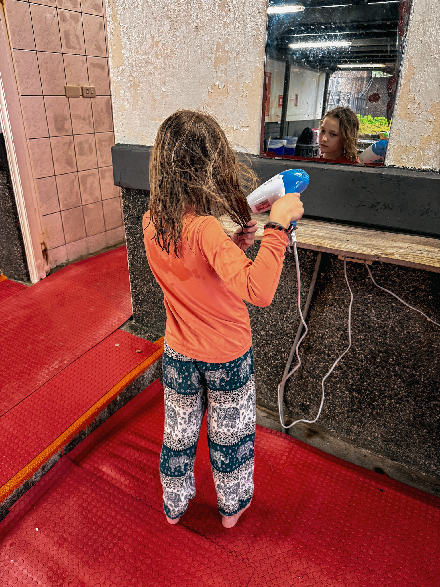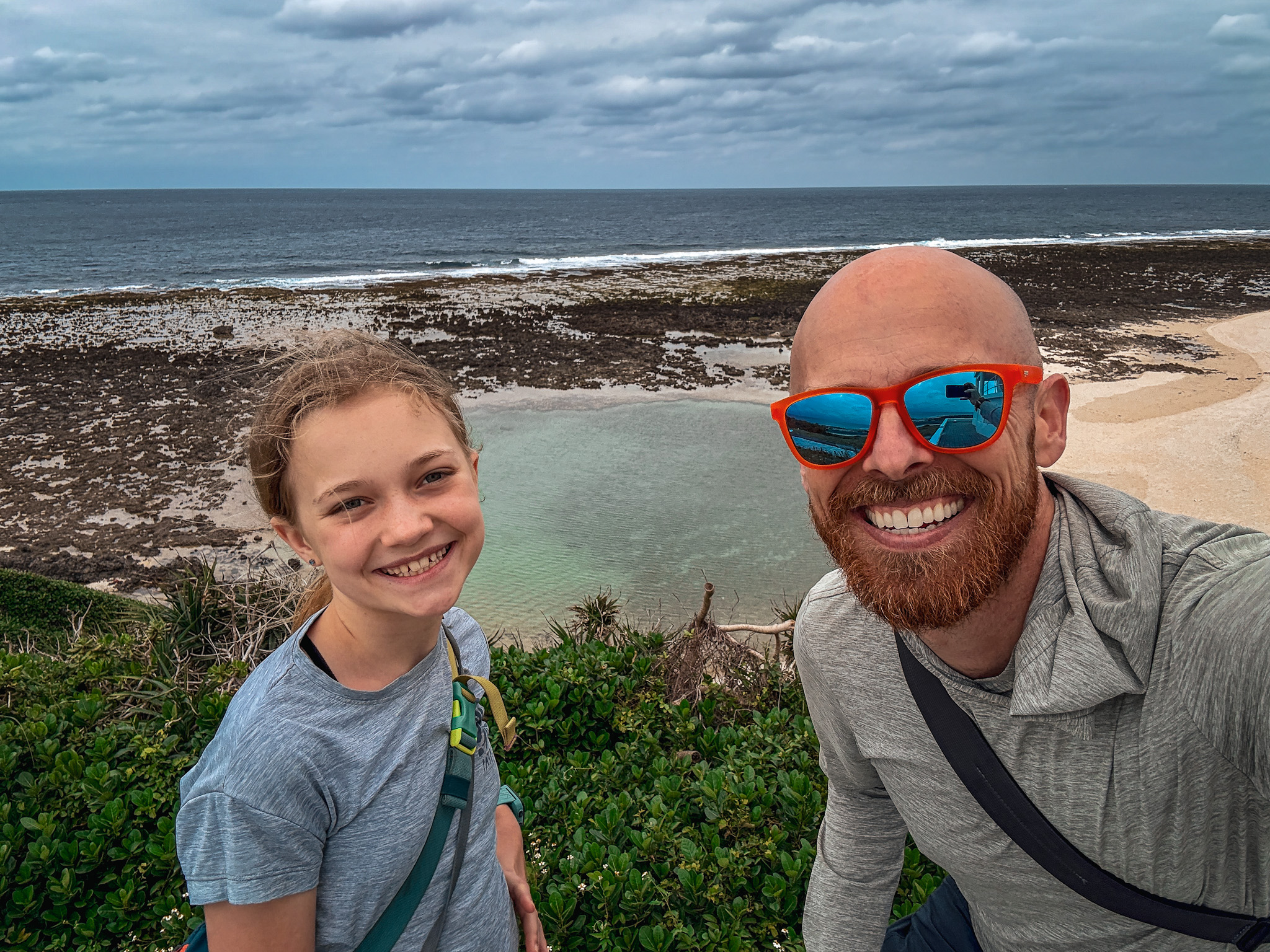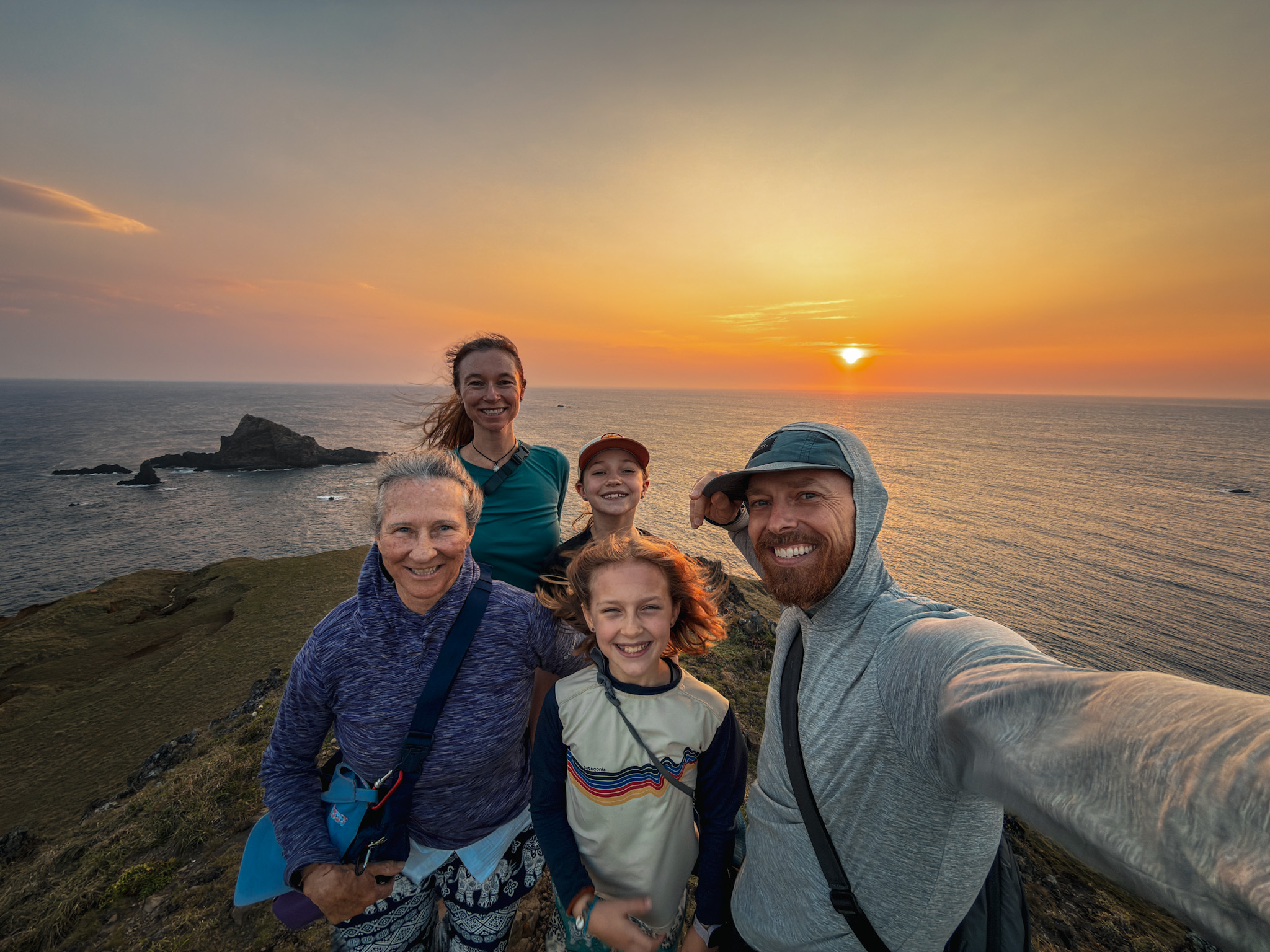 The sunrise, for its part, was a complete no-show. Solid cloud cover from horizon to horizon. Not a sliver of dramatic sky. This is exactly the kind of thing that would have been deflating if the point of getting up at 4:30 had actually been the sunrise. It turned out the point was sitting in a hot saltwater spring on a small volcanic island with the Pacific in front of us and new friends we’d met two days ago beside us, in the dark, in the rain, at five in the morning, bouncing between pools of varying temperatures while the sky quietly brightened into grey. It didn’t require a dramatic sky. It didn’t need to.