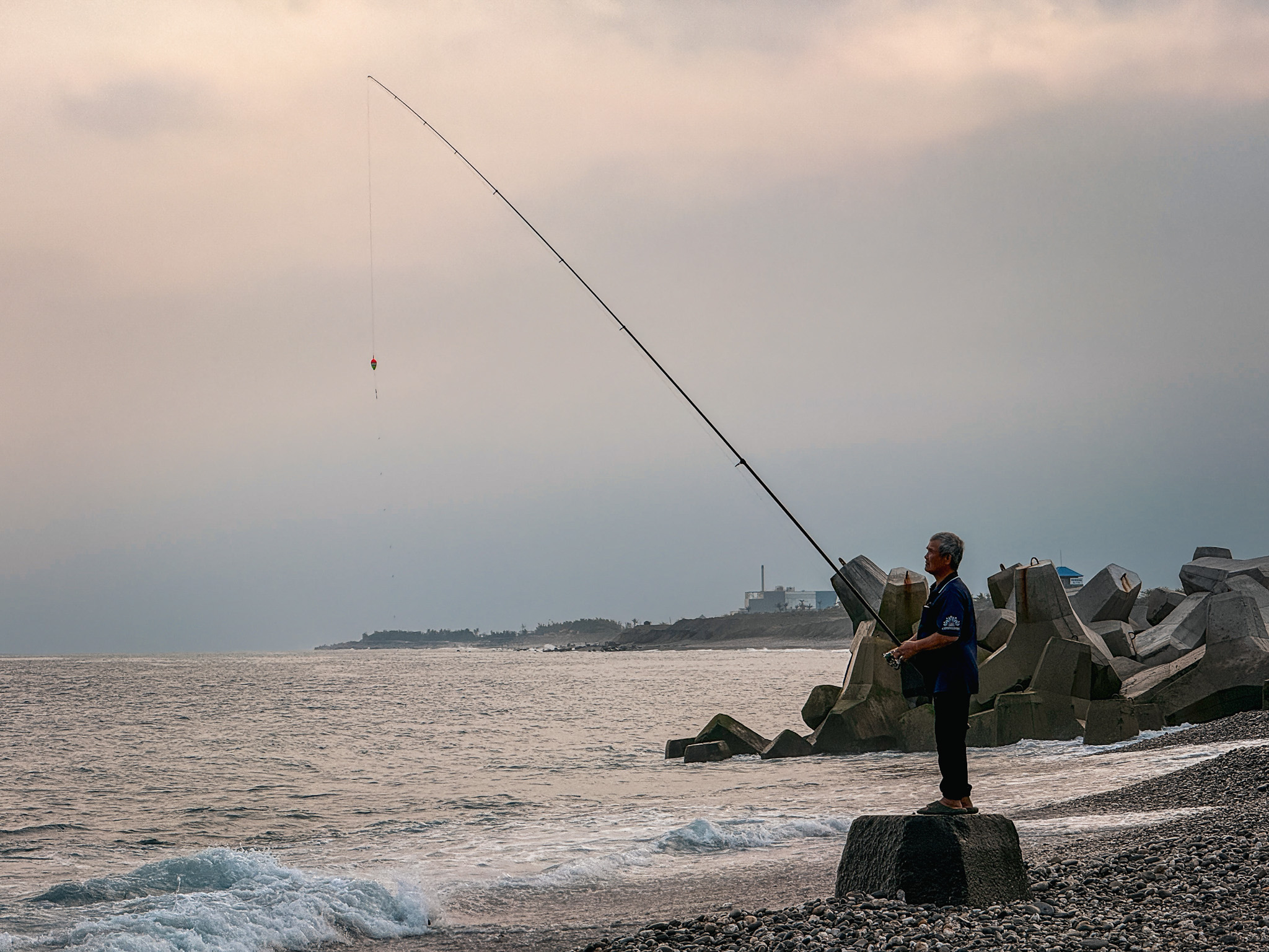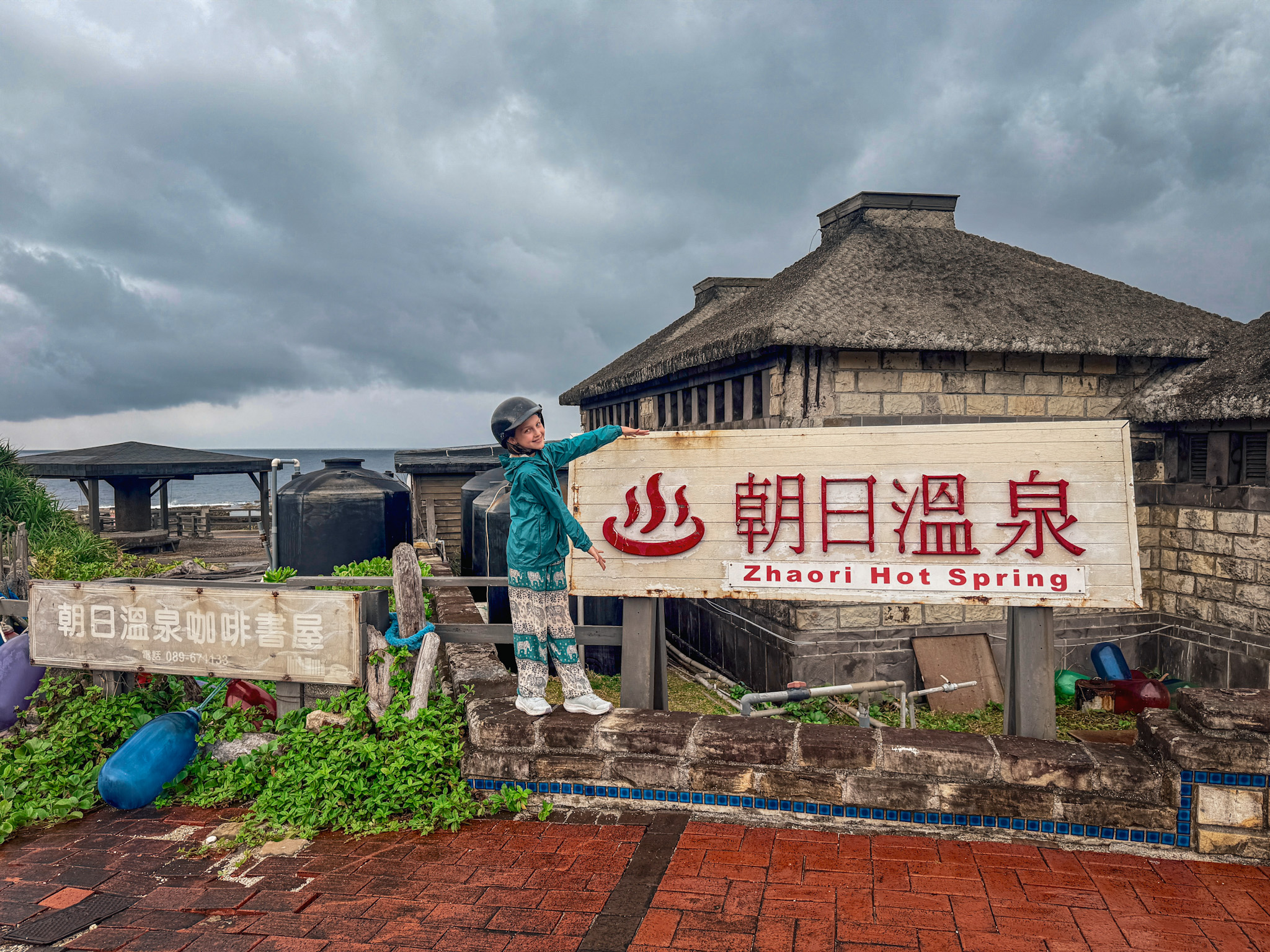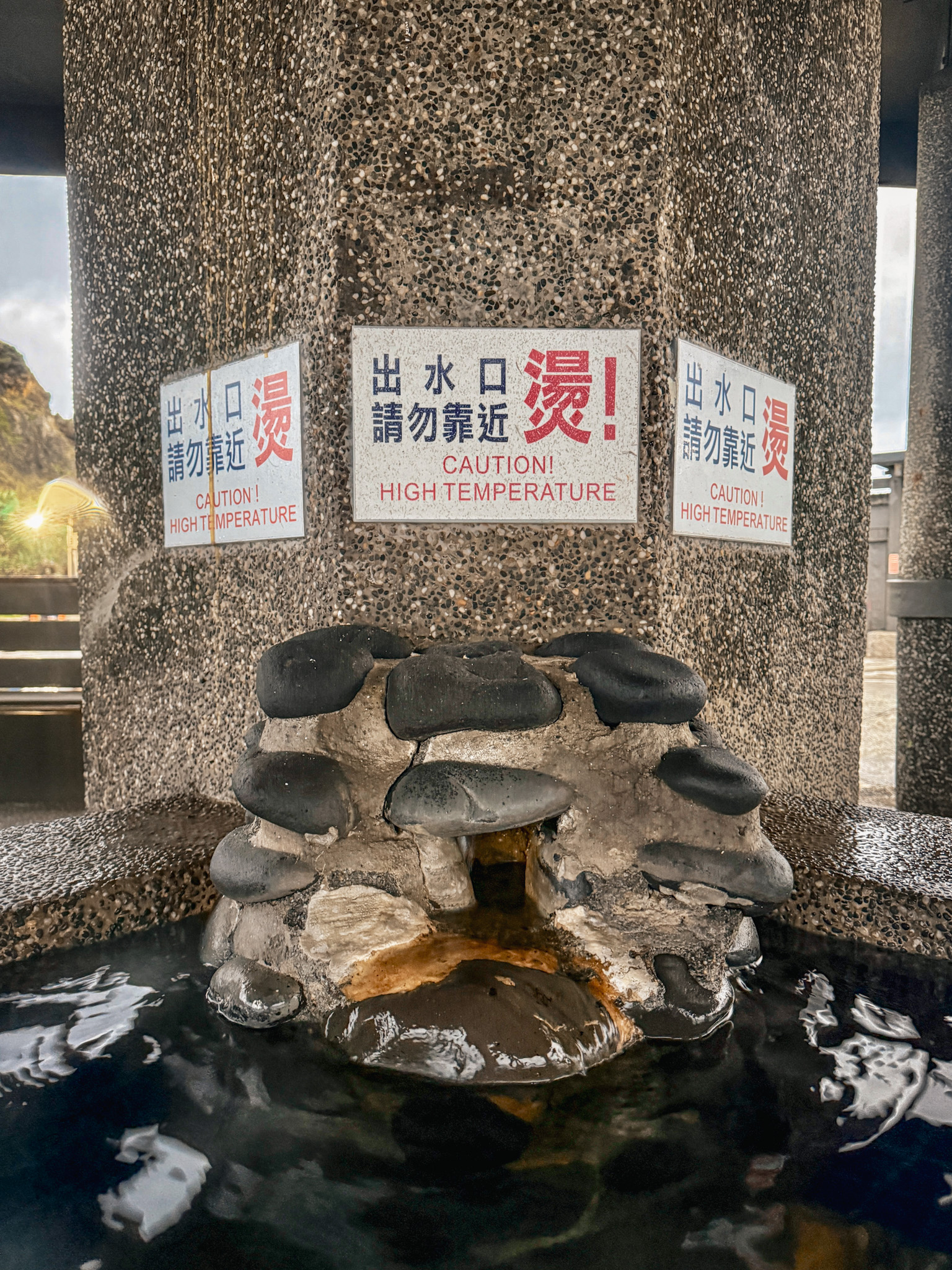 Zhaori Hot Spring is one of only a handful saltwater hot springs in the world. The water is seawater that seeps into the earth, gets heated passing through the island’s volcanic geology, and pushes back up through the intertidal zone warm and extremely salty. The facility has multiple pools running from quite cool to, at the extreme end, 115 degrees Fahrenheit. We mostly stayed around 105 to 106, where cold seawater and hot spring water entered from opposite directions and staff instructed us to stir the water with our arms to mix it. Max thought this was slightly absurd until everyone started doing it and it actually worked.