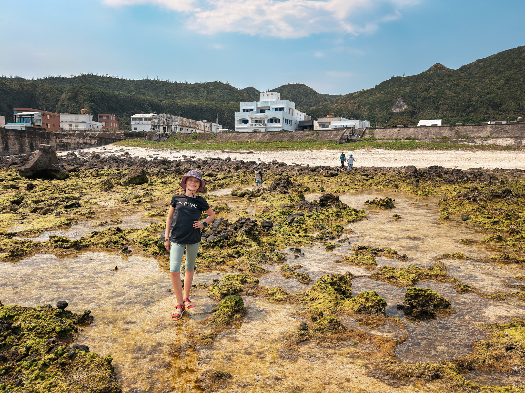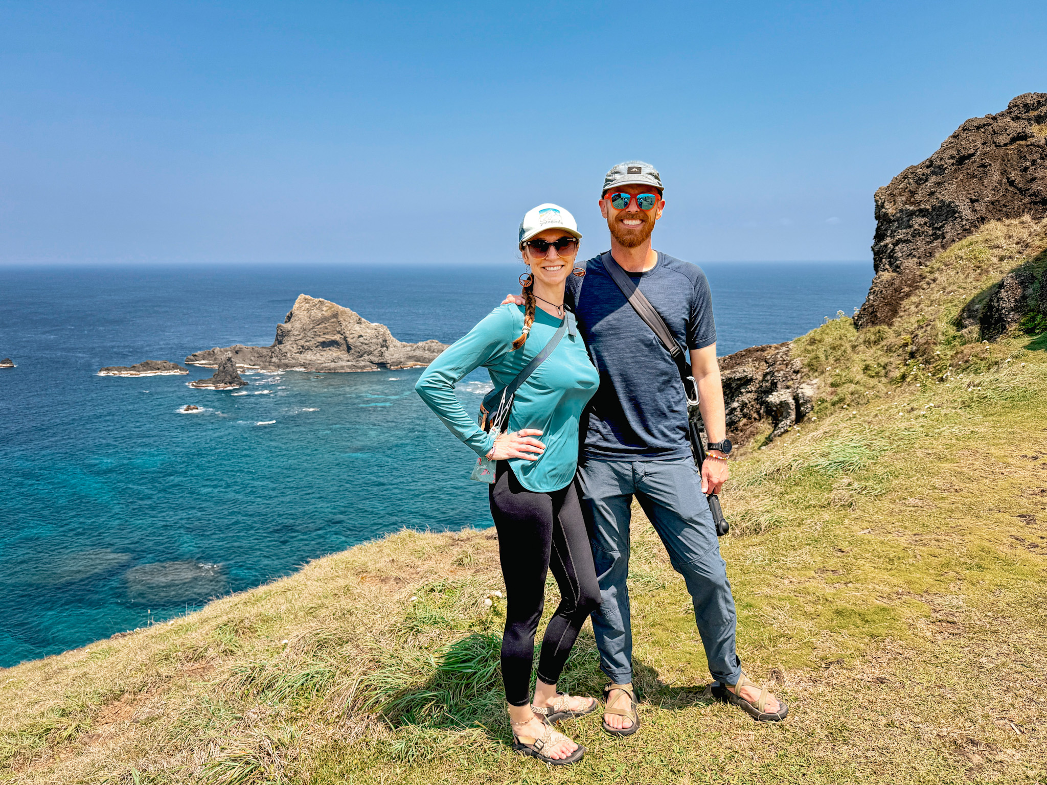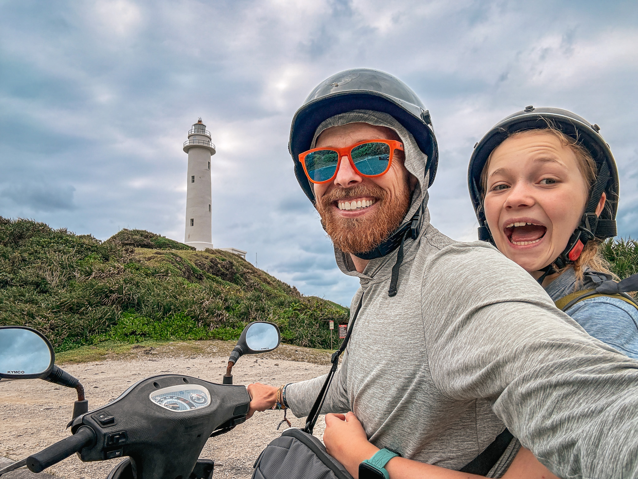 Green Island is twenty kilometers of volcanic coastline, tide pools, scooters, a saltwater hot spring, and — if the timing works out — a pair of Spanish aerospace engineers who turn up on a hiking trail and then again in the dark at five in the morning to watch a sunrise that never comes. We were there for four days. We’d happily could have stayed longer.