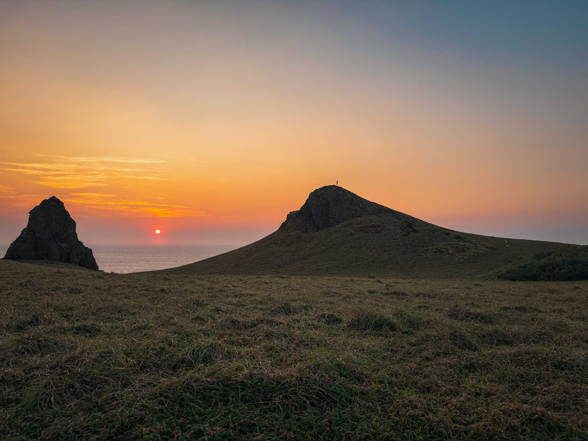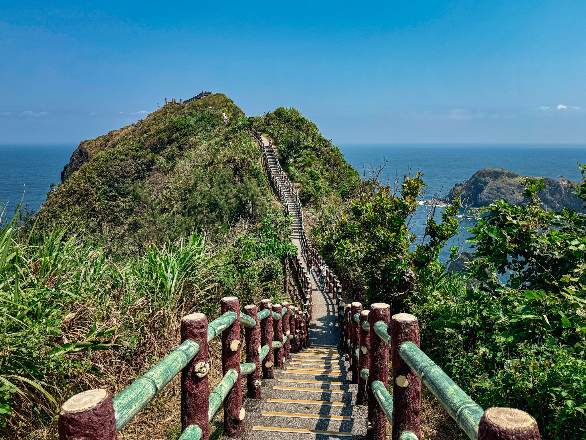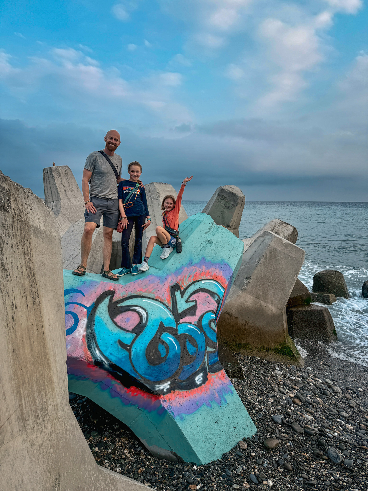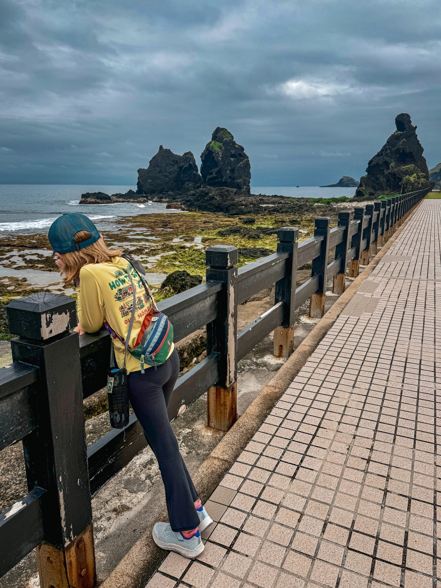 Green Island is twenty kilometers of volcanic coastline, tide pools, scooters, a saltwater hot spring, and — if the timing works out — a pair of Spanish aerospace engineers who turn up on a hiking trail and then again in the dark at five in the morning to watch a sunrise that never comes. We were there for four days. We’d happily could have stayed longer.
