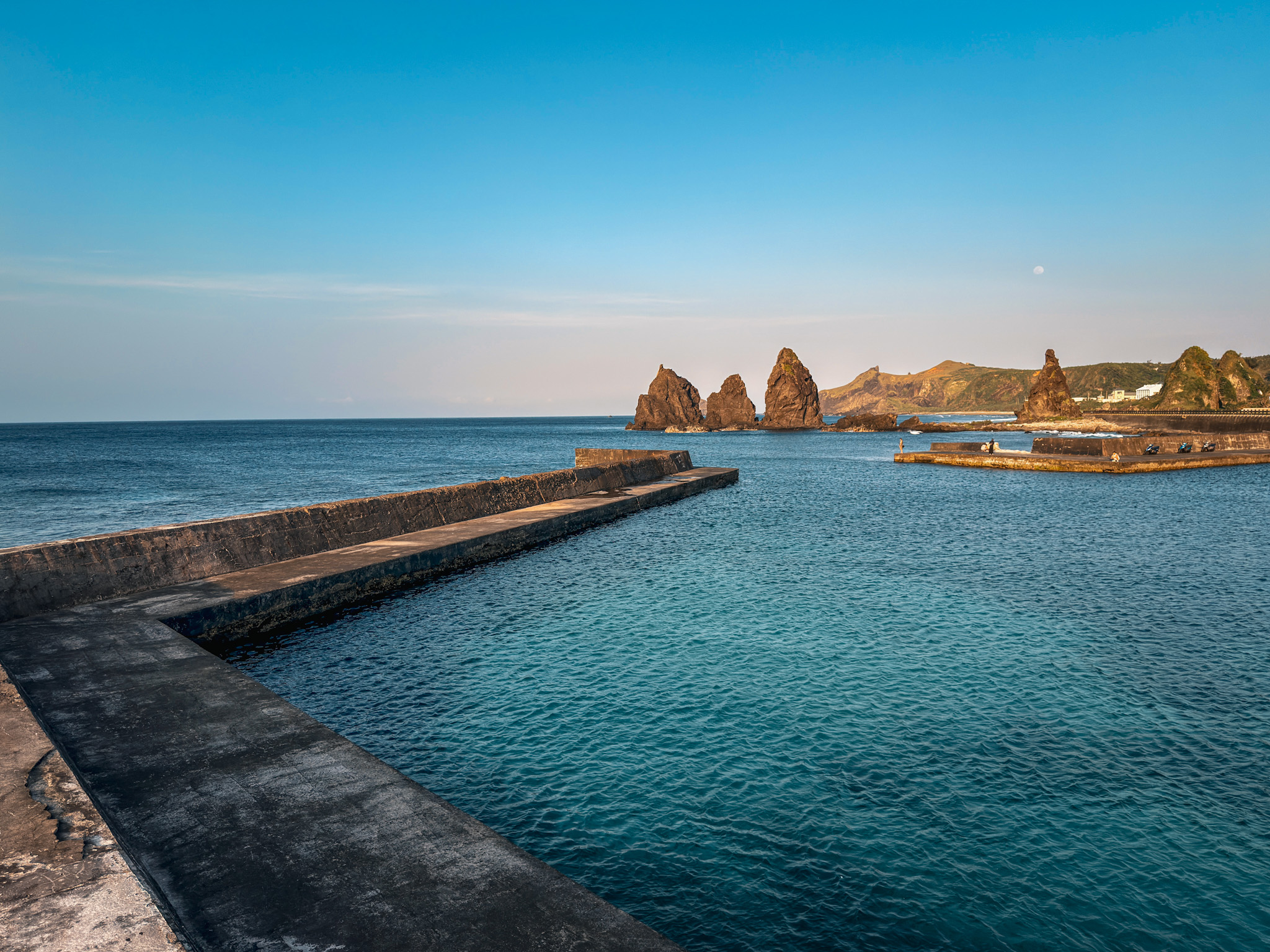 Green Island is small — about twenty kilometers around the entire coastline — and volcanic, and makes no attempt to hide either of those facts. The coastline is dark rock walls shooting almost vertically from the water, the interior rising steeply behind everything, the whole island raw and dramatic in a way that builds on you over four days. The scooter loop becomes familiar quickly. The breakfast spot, the burger place, the night market. The siesta hours, which we kept running afoul of with the confidence of people who had not already learned this lesson multiple times in Taiwan.